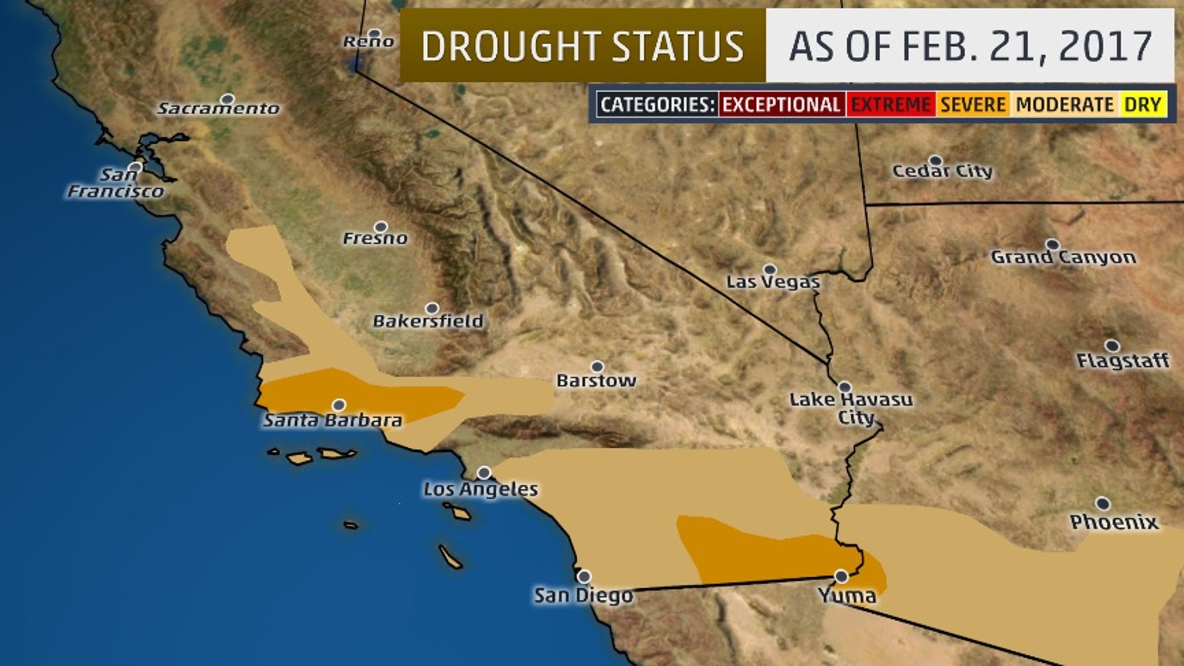 Drought conditions were eliminated in northern California in early January, but persist in parts of Southern California. There is good news: the drought area in Southern California continues to shrink. As of Tuesday, only 16.87 percent of the state is in a drought, according to the U.S. Drought Monitor.