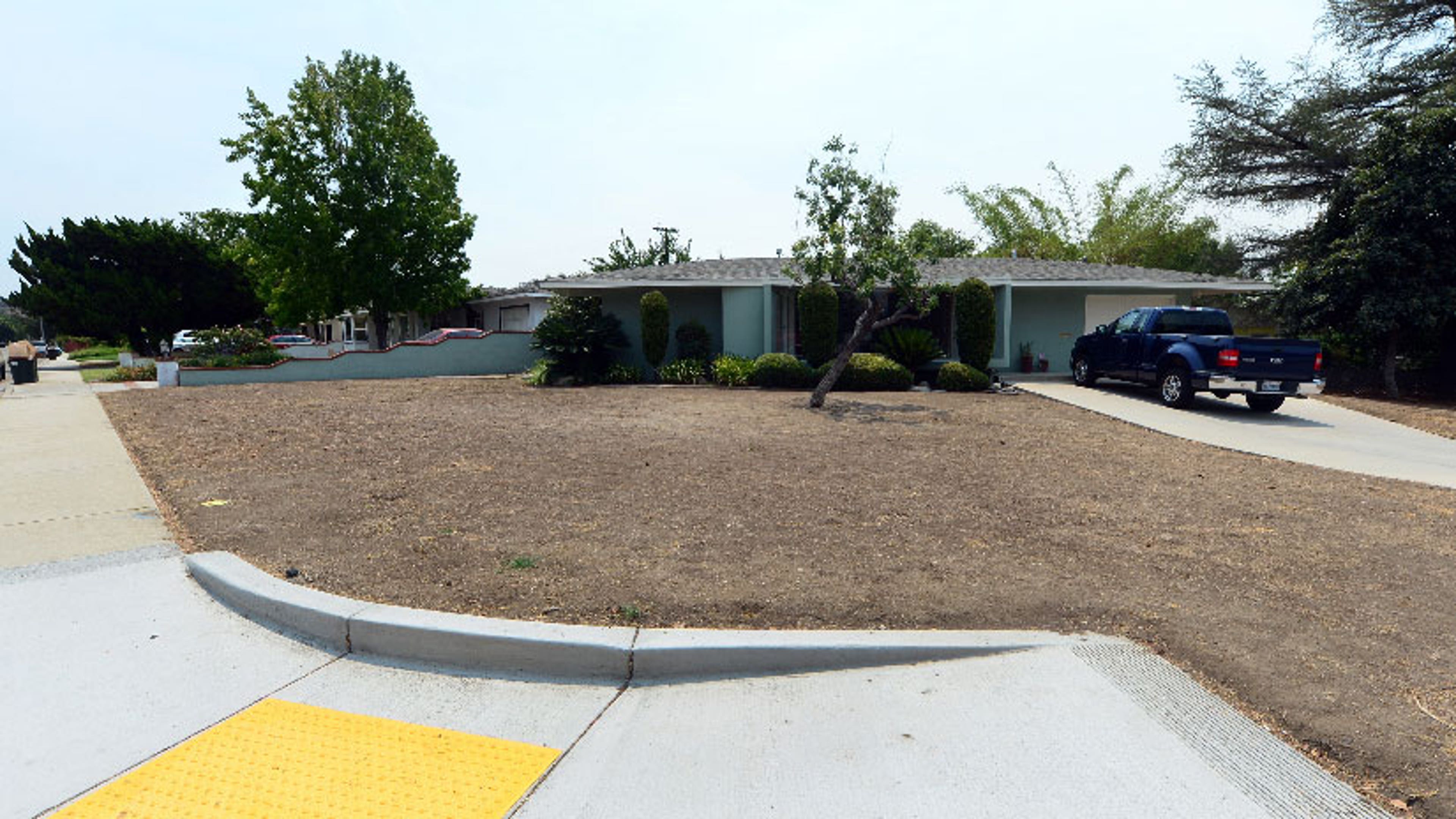 A resident's brown lawn can be seen in the city of Glendora, California, east of Los Angeles, on July 29, 2014.