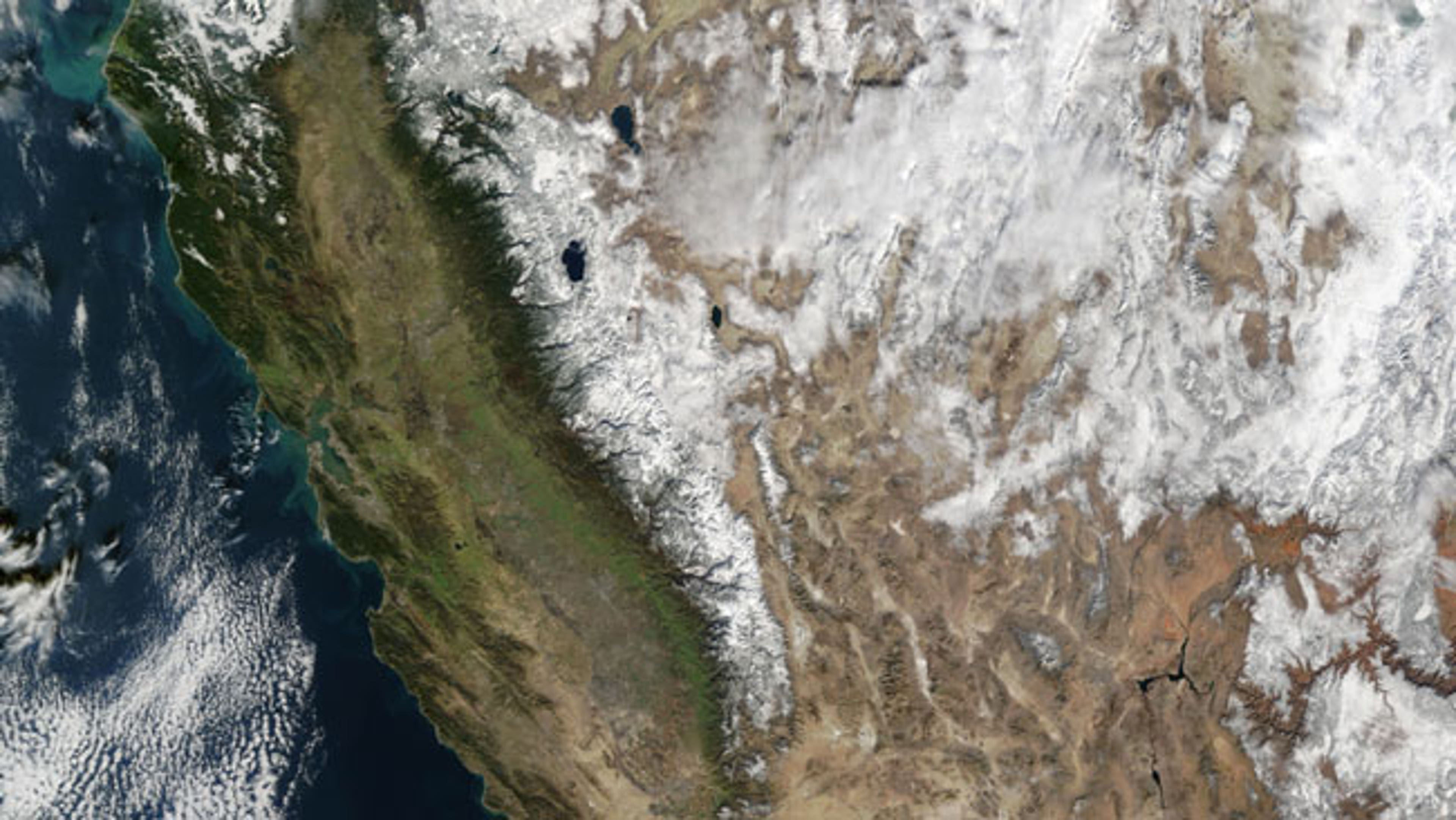 The photo above shows a satellite of the snowpack on the Sierra Nevada, made visible thanks to nearly cloudless conditions on Dec. 15, 2015.