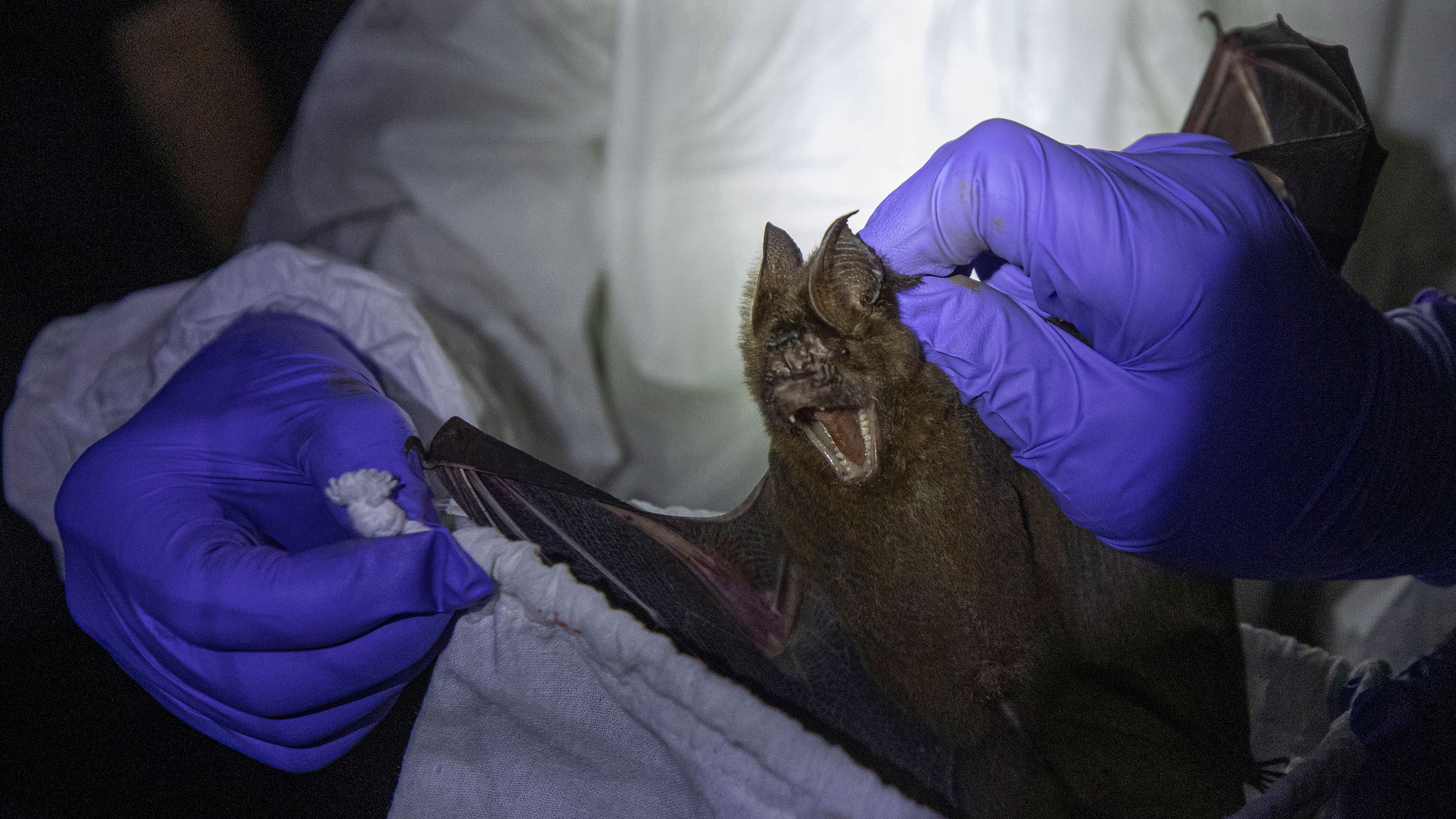 Die Forscher arbeiteten in einer Nacht und am Folgetag und entnahmen nicht nur Proben von Hufeisennasen, sondern auch von anderen Fledermäusen. Ziel ist, von Tieren übertragene Krankheitserreger besser zu verstehen.