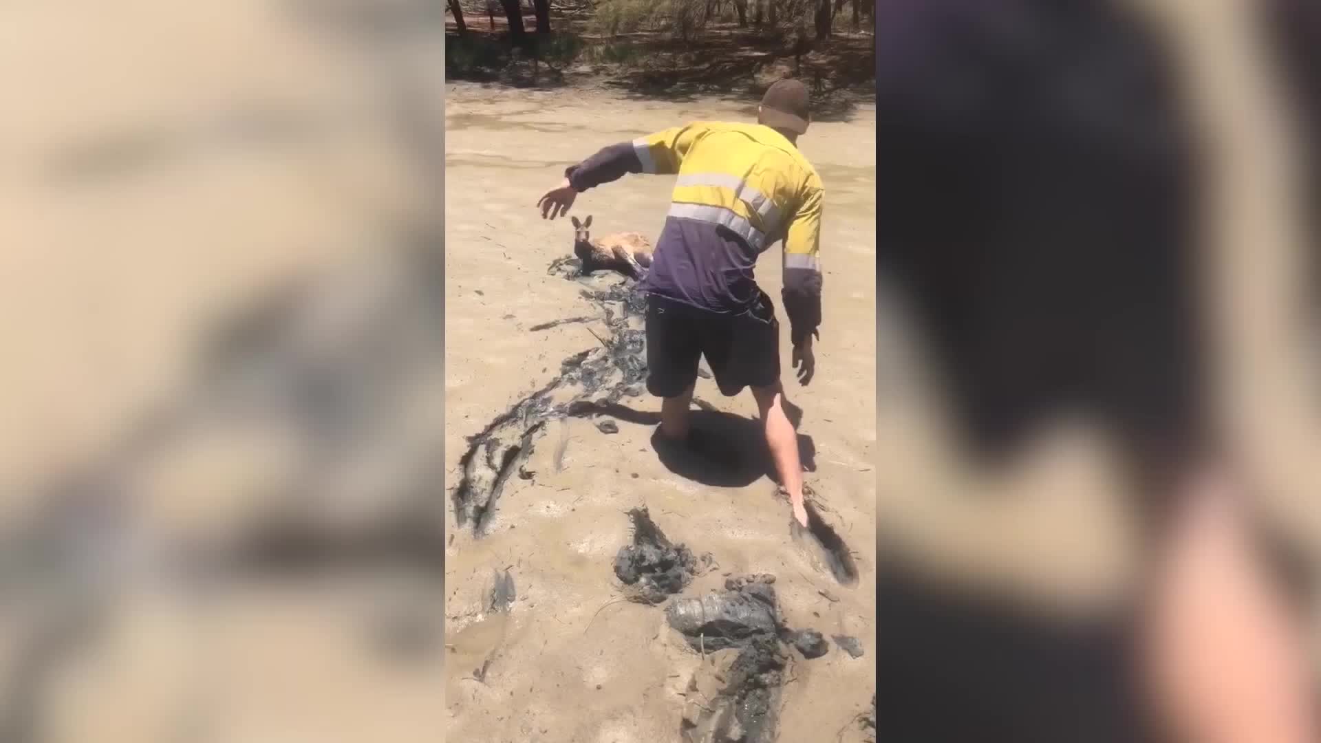 Im Westen Australiens entdecken zwei Männer ein Känguru, das im Schlamm feststeckt. Nachdem das Tier gerettet wurde, springt es geradewegs wieder zurück in den Schlamm.