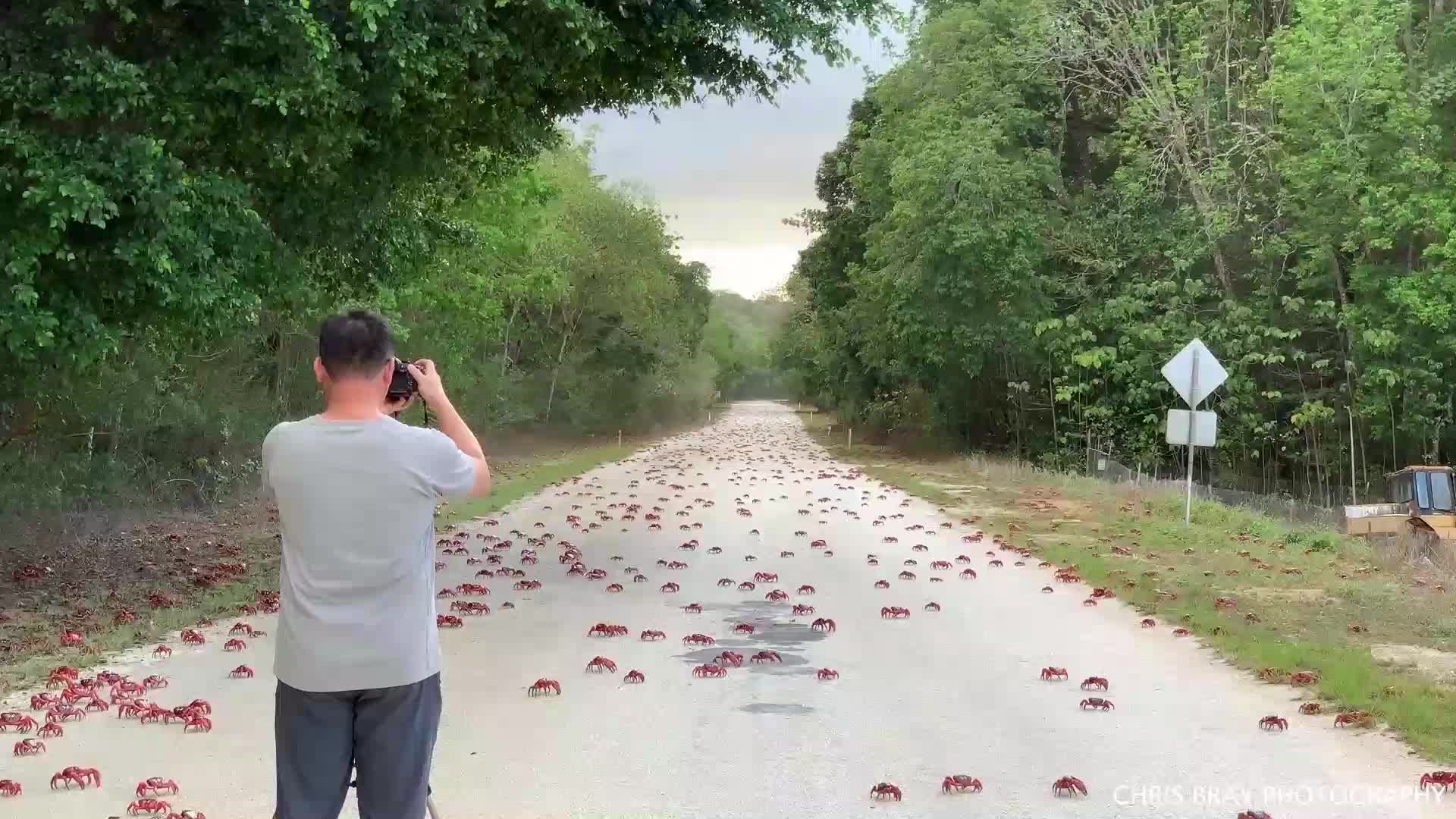Millionen Krabben verstopfen Straßen - doch ein Fotograf hat geniale Lösung