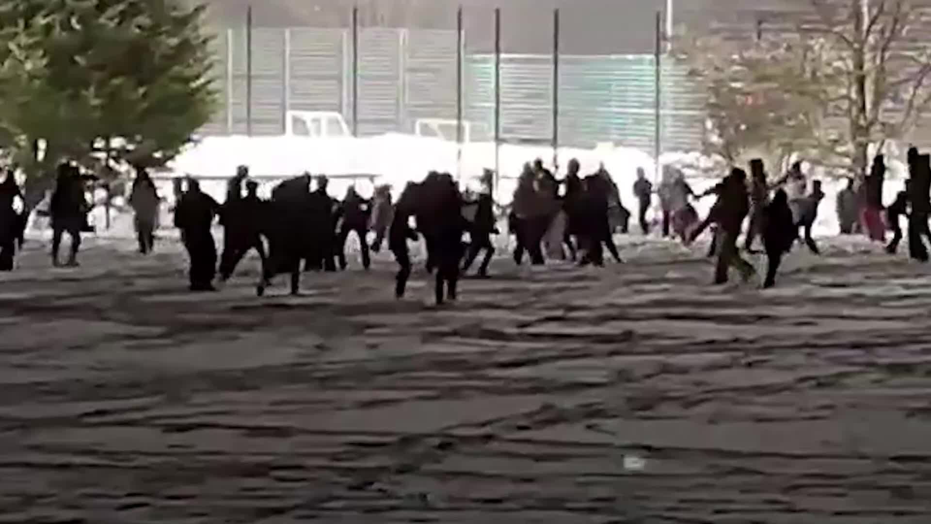 Hier liefern sich über 300 Menschen eine Schneeballschlacht