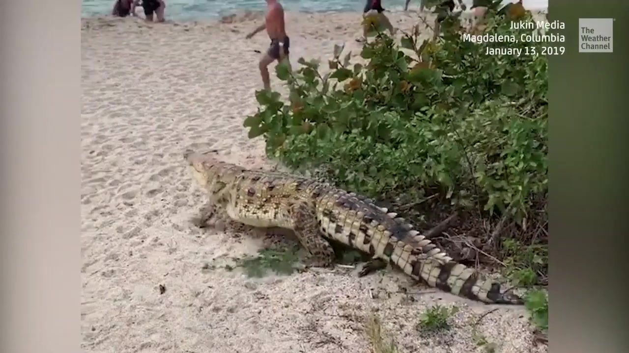 Krokodil räumt Strand voller Badegäste leer - Videos from The Weather Channel
