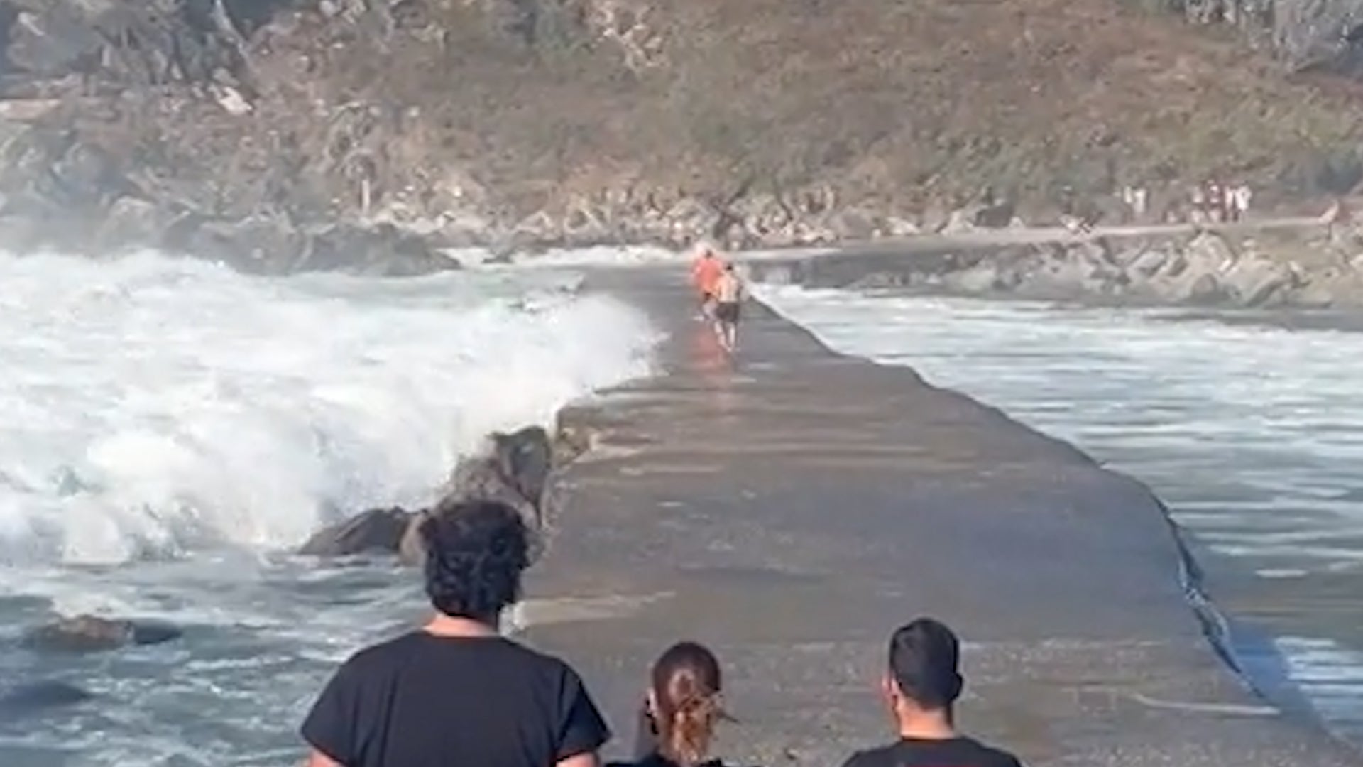 Zwei Touristen versuchten über einen schmalen Dammweg in Spanien von einer Insel zur anderen zu laufen. Von weitem waren aber bereits die tosenden Wellen zu sehen.