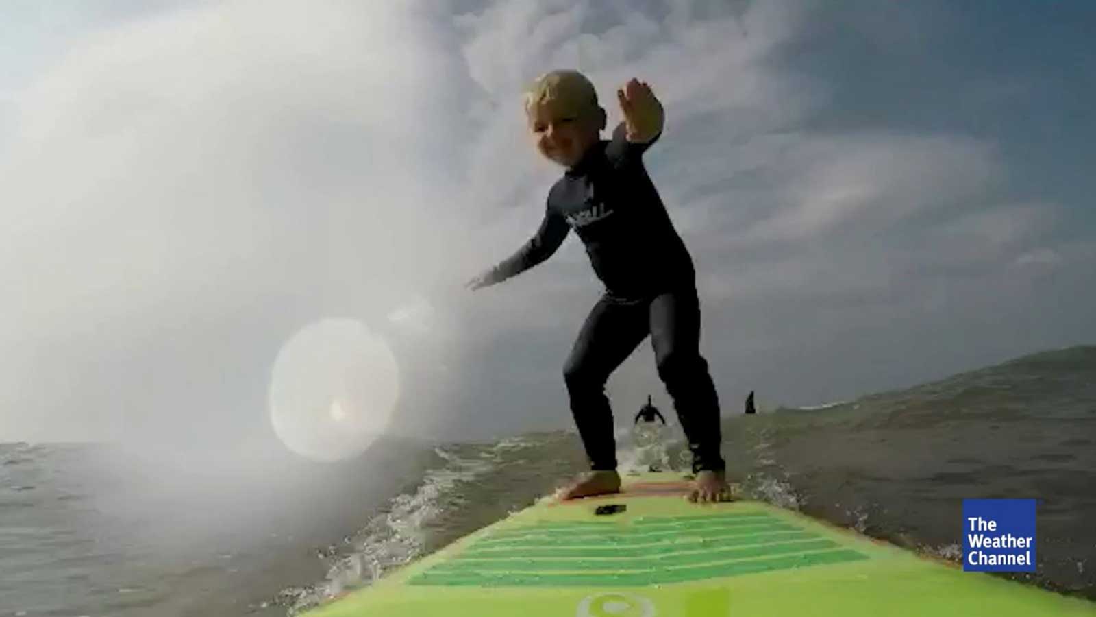 Vierjähriger Mini-Surfer sorgt am Strand für Staunen - Videos from The Weather Channel