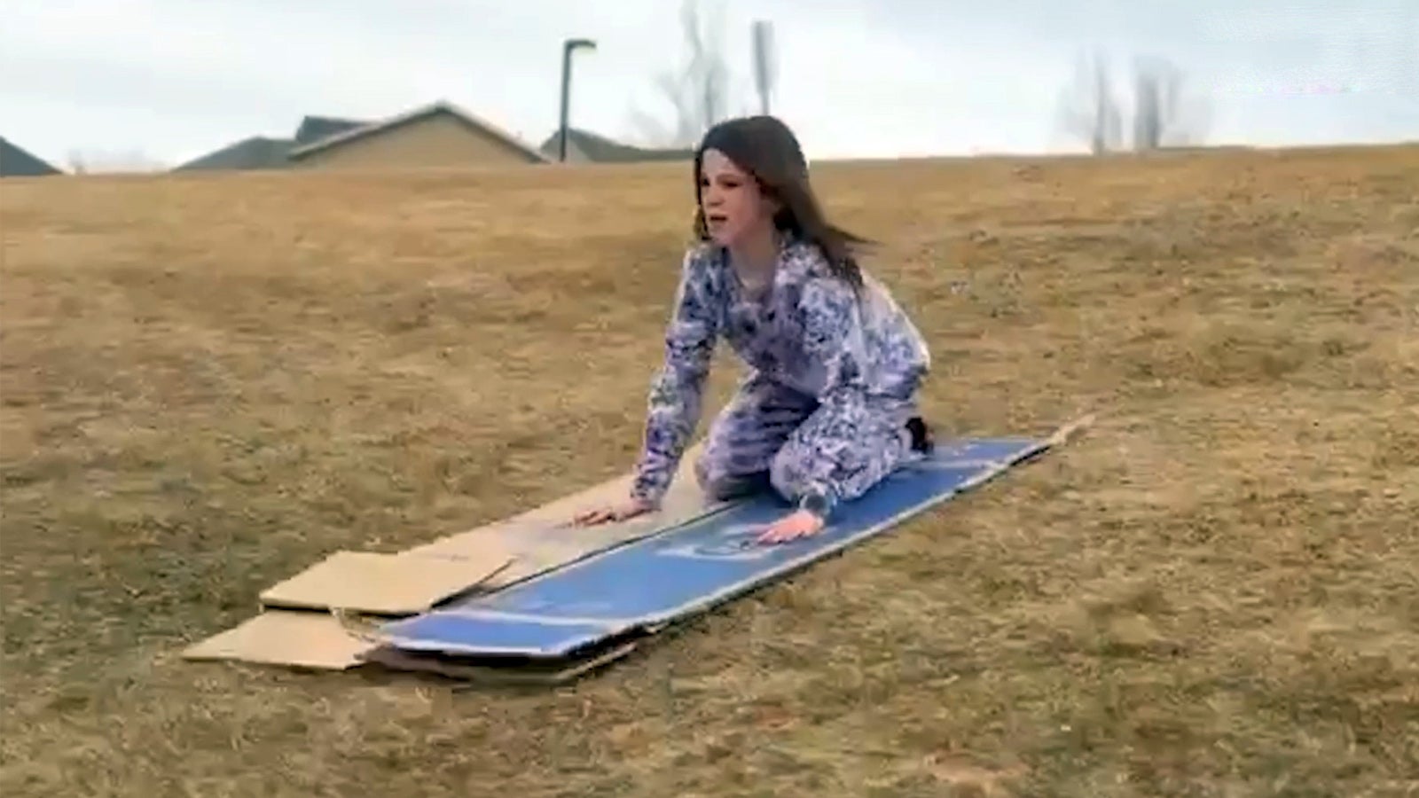 Eine Familie aus Utah hat ihre Winterfreude trotz Schneemangel bewahrt. Mit selbstgebauten Schlitten aus Pappkartons erobern die Kinder ihre Nachbarschaftshügel.