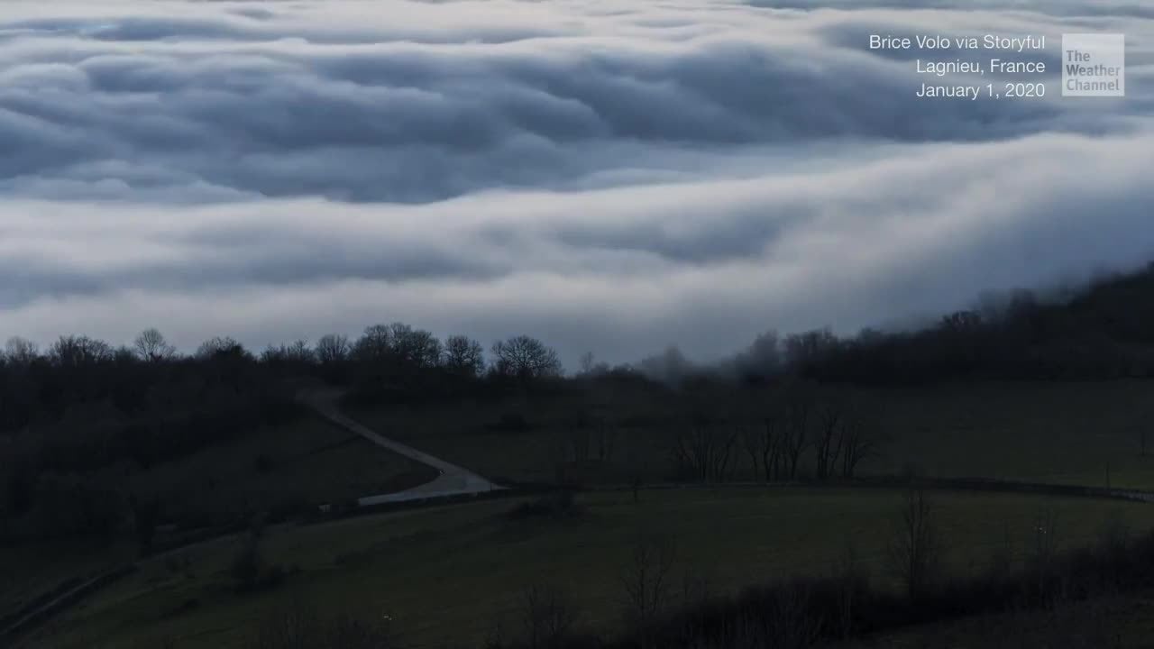 Spektakulärer Anblick in Frankreich: An Neujahr nahm ein Fotograf ein Zeitraffer-Video auf, in dem die Wolken sich wie Meereswellen bewegen.