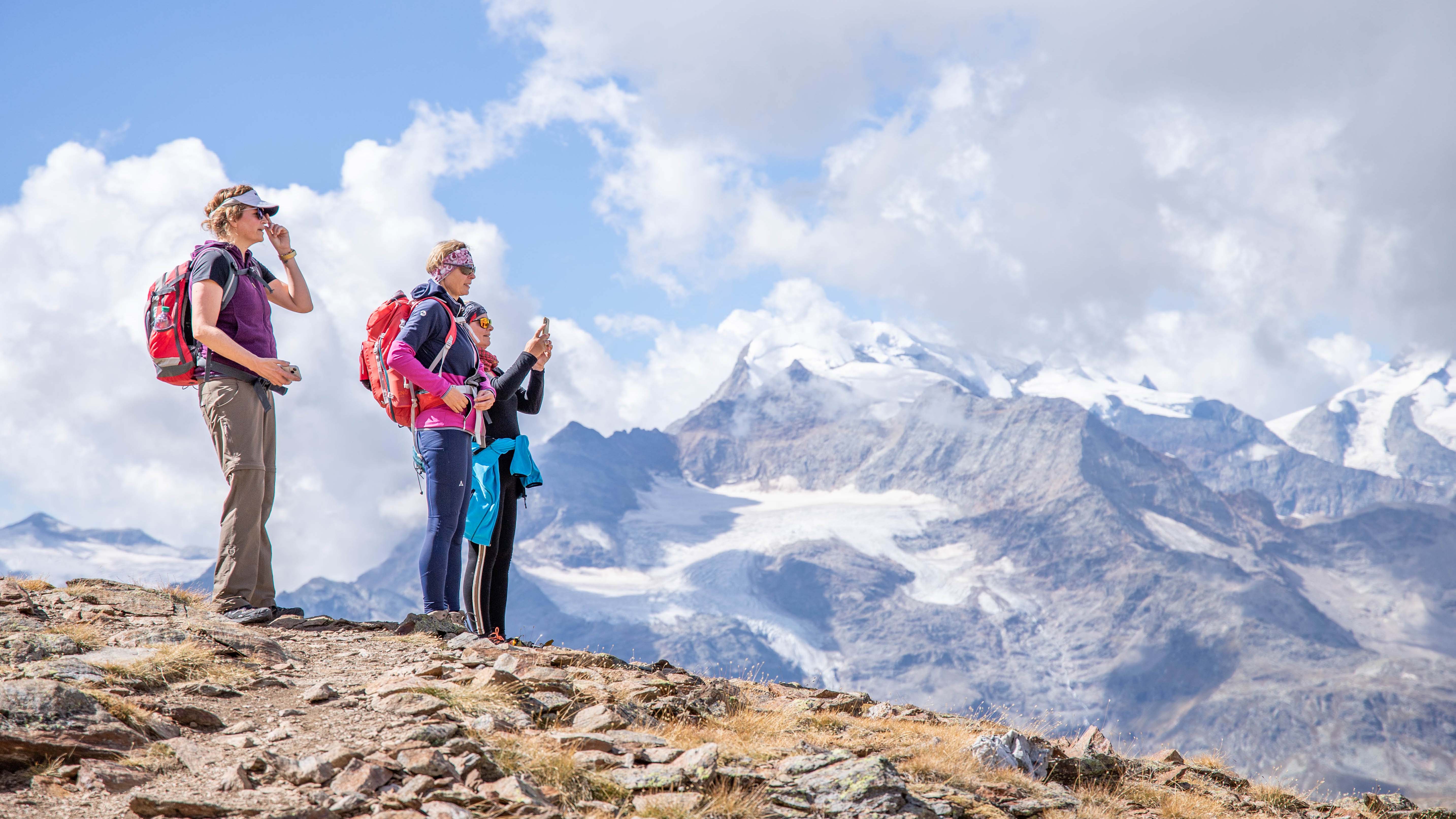 Es geht zweieinhalb Stunden auf einfachen Wanderwegen durch eine atemberaubend schöne Landschaft: Eingebettet in ein Farbspiel aus Moosgrün, das wie Samt die Felshänge bedeckt, zeigt sich auf auf 2687 Metern Höhe zwischen glitzernden Rot- und Rosa-Farben des Gesteins und dem verschneiten, weißen Gipfel ein herzförmiger See. Das Wasser des Lago del Vago leuchtet in irisierendem Türkisblau. Doch ab jetzt wird es langsam anstrengend. Wer zum Gipfelkreuz will, muss schwindelfrei und trittsicher sein. Denn kantige Felsbrocken und ein steiler Grat liegen davor. So leicht ist es dann doch wieder nicht, als unerfahrener Alpinist einen Dreitausender zu bewältigen.