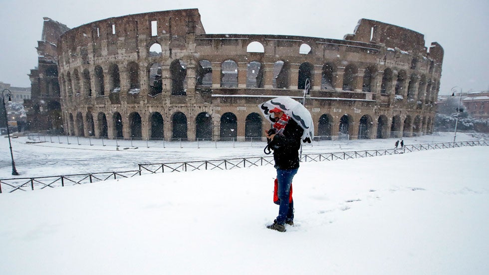 In Rom schneit es sonst kaum. Am Montag jedoch fielen nach Angaben des Wetterdienstes „3bmeteo“ fünf bis zehn Zentimeter Schnee und brachten den öffentlichen Nahverkehr fast völlig zum Erliegen. Die sonst grünen Parks zeigen sich plötzlich in weiß, auf dem Petersplatz im Vatikan und vor dem Circus Maximus kam es zu Schneeballschlachten und die Piazza Novana bot sich als Winterlandschaft dar.