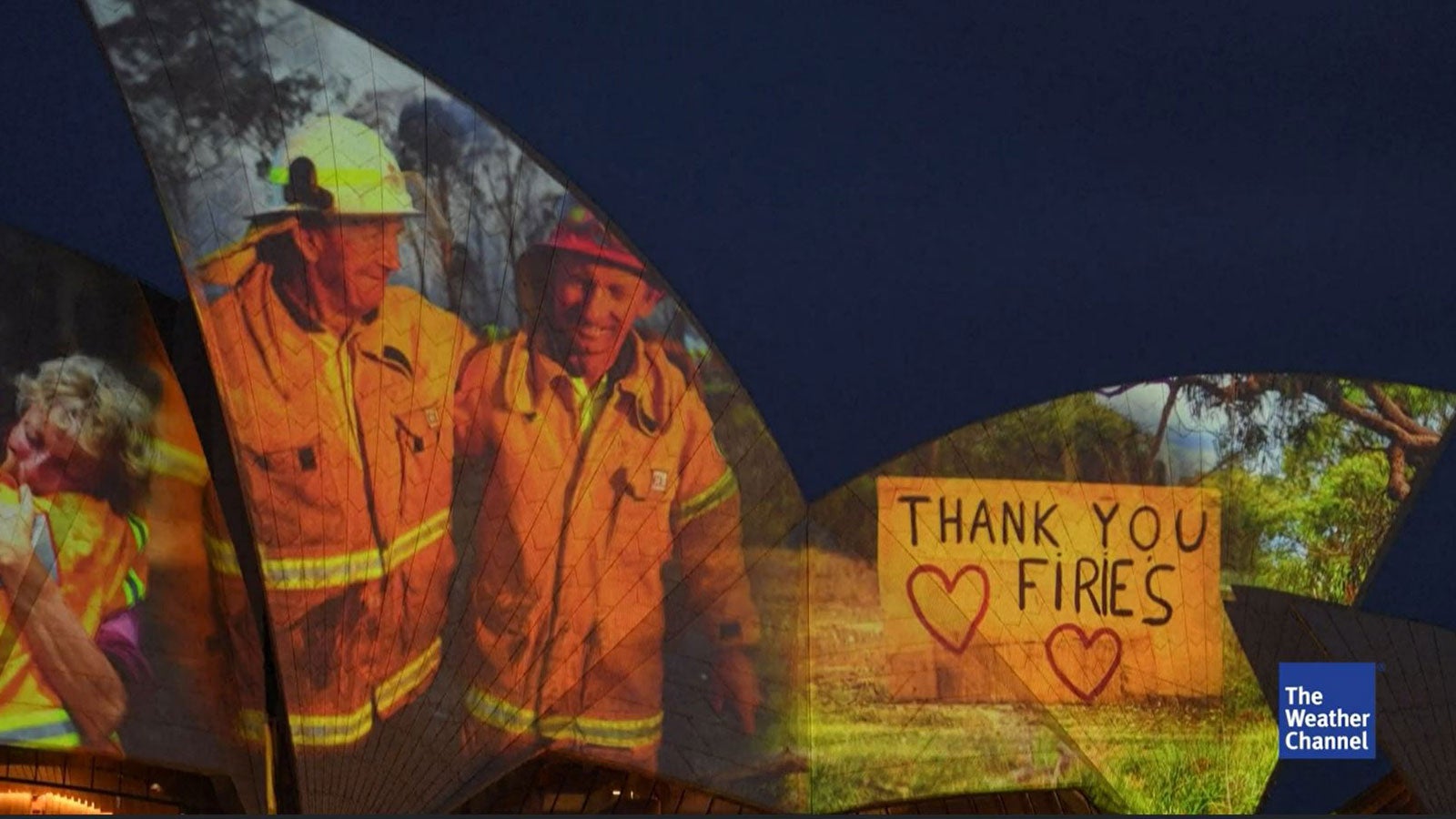 Mit einer gigantischen Foto-Show am Opernhaus in Sydney hat sich die Stadt nun für den unermüdlichen Einsatz der Feuerwehrkräfte bedankt. Internationale Musiker wollen zudem den Opfern der Katastrophe helfen: Mit einem neun Stunden langen Konzert in Sydney wollen zahlreiche Stars Geld sammeln.