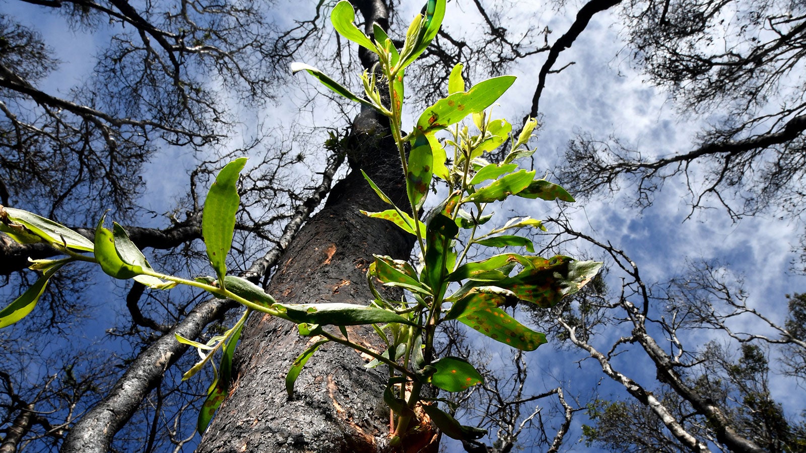 Bestimmte Pflanzen wie etwa Eukalyptus-Bäume sind an regelmäßige Feuer gewöhnt. "Sie treiben einfach wieder aus, bei manchen Arten wachsen sogar Blätter direkt aus der verkohlten Krone, als wäre nichts gewesen", sagt Kirsten Thonicke vom Potsdam-Institut für Klimafolgenforschung (PIK).