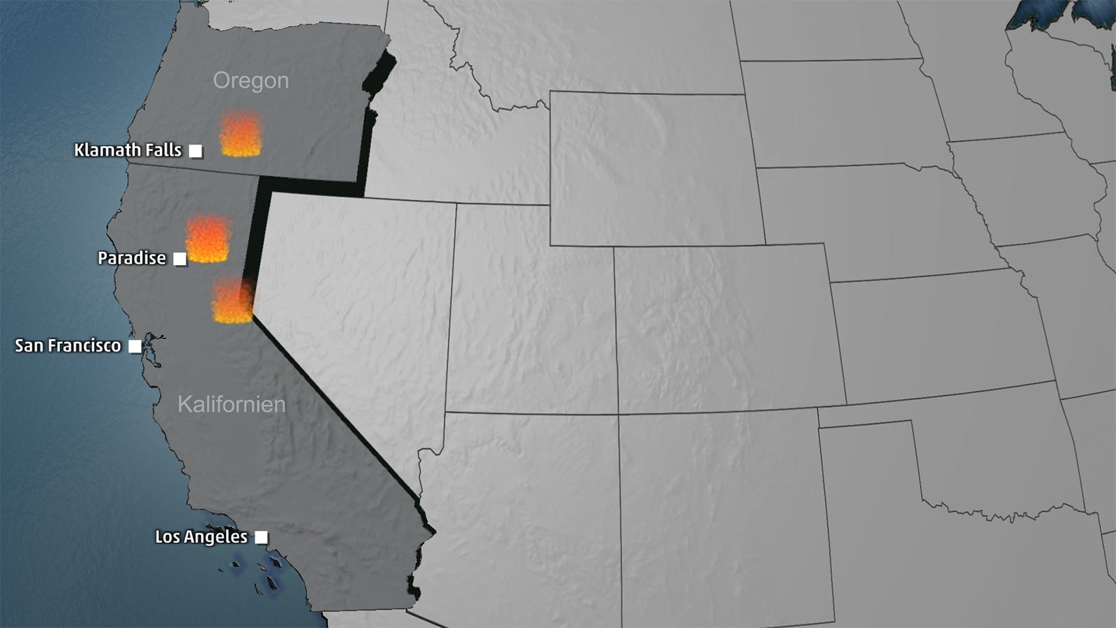 Insgesamt kämpften die Feuerwehren in den USA gegen rund 70 Brände. Die Verwaltung der Staatsforsten teilte mit, allein 16 große Brände loderten im Nordwesten der USA.