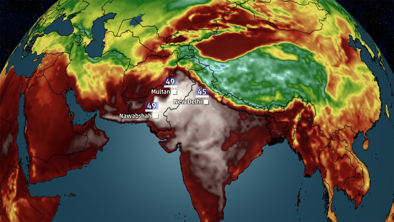 Die Hitzewelle erfasst nicht nur Indien und Pakistan, auch wenn hier im Moment die höchsten Temperaturen erreicht werden. Auch im südlichen Iran, in Katar, dem Oman und den Vereinigten Arabischen Emiraten steigen die Werte auf bis zu 50 Grad.