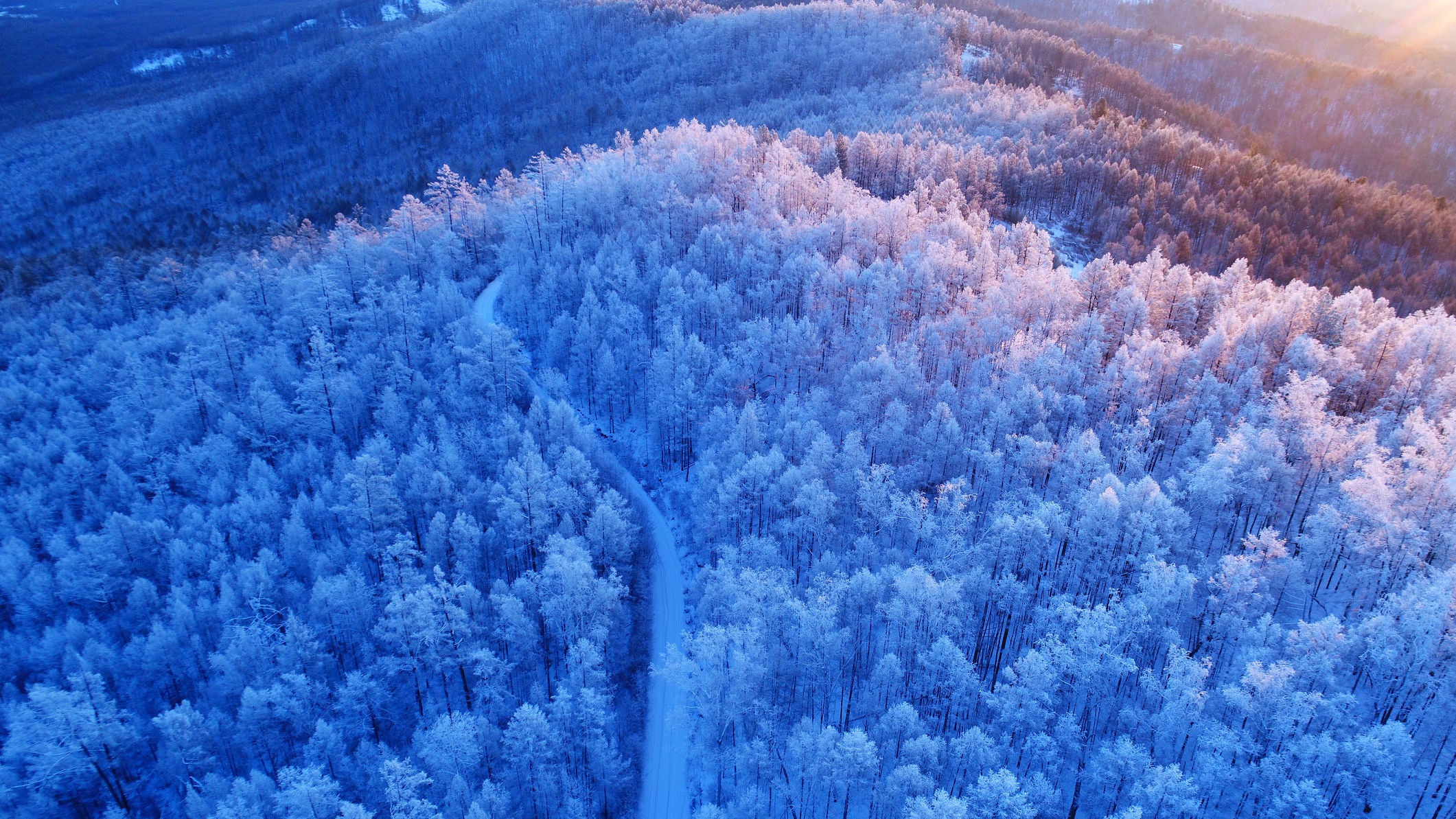 Das Hinggan-Gebirge in China ist acht Monate im Jahr von Schnee bedeckt.