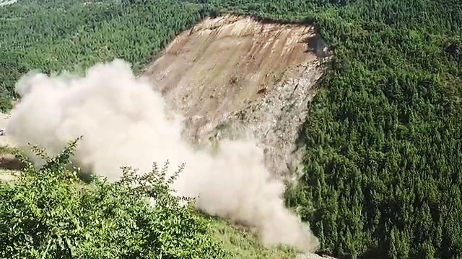 Dieser massive Erdrutsch gleicht eher einem Wasserfall. Ein riesiger Teil dieses instabilen Berges stürzte in Zentralchina ein.