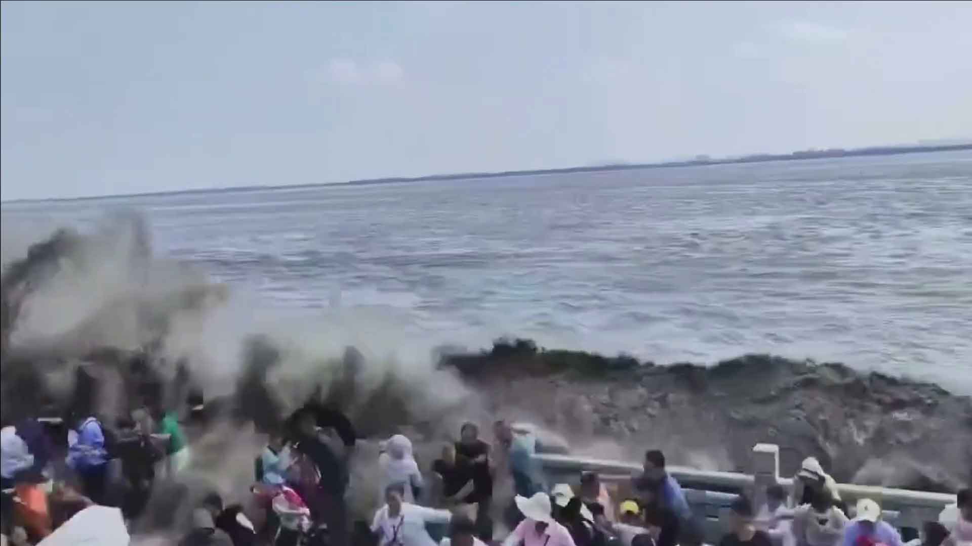 Dutzende Touristen wurden von dieser riesigen Gezeitenwelle in China von den Beinen gerissen. Mit einer Höhe von fast 10 Metern ist die Gezeitenwelle in Hangzhou die größte der Welt.