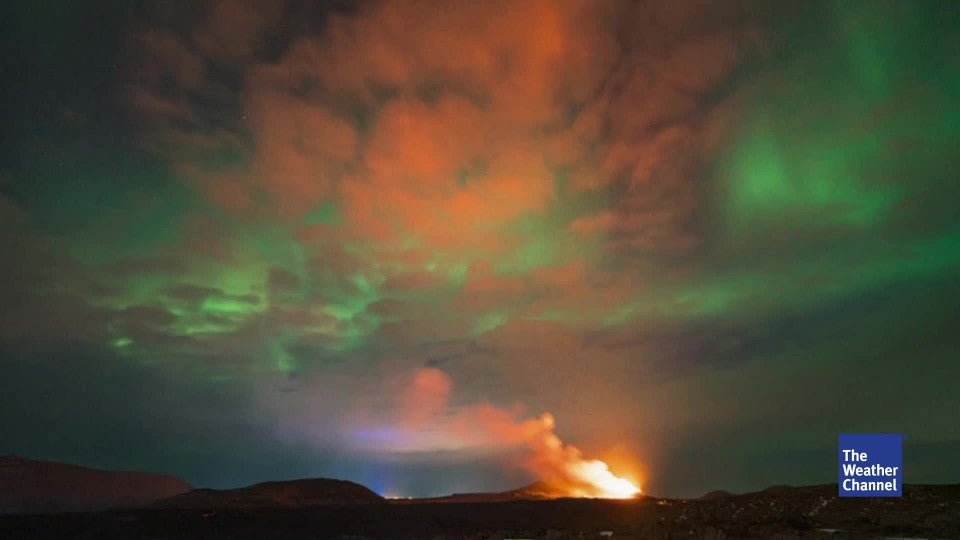 Spektakulärer Anblick in Island: Lava und Polarlichter zeigen sich gleichzeitig - Videos from The Weather Channel