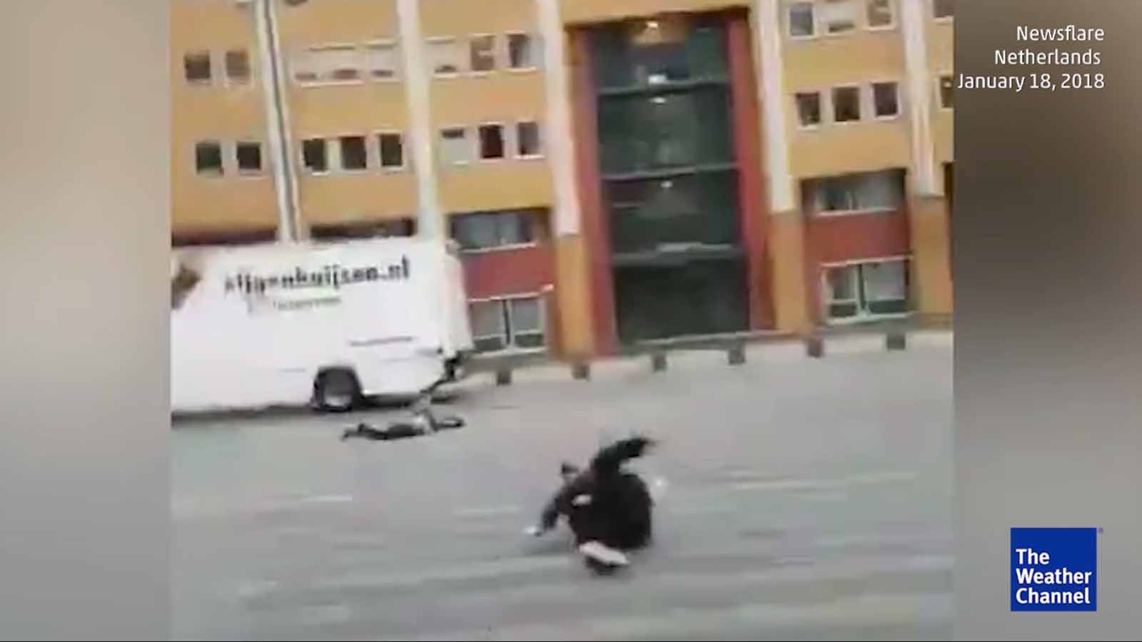Video zeigt, wie Sturm Friederike Menschen über einen Platz schleudert - Videos from The Weather Channel