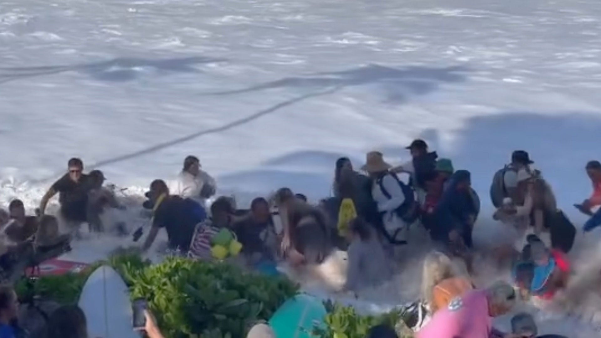 Welle reißt Dutzende Zuschauer von den Beinen