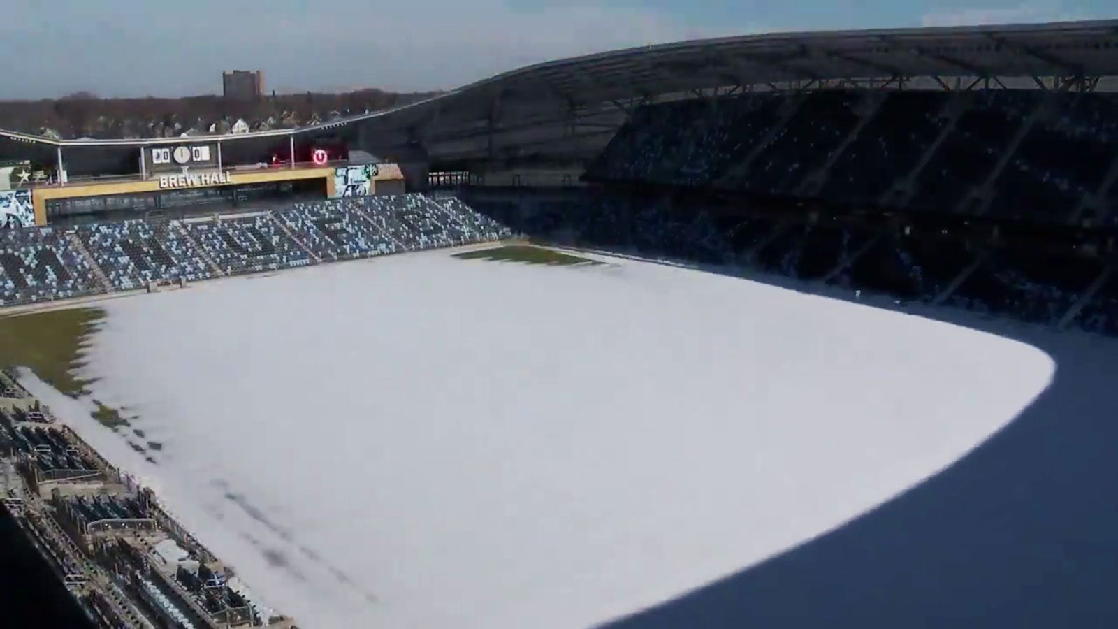Fußballfans aufgepasst: In dieser Zeitraffer-Aufnahme ist zu sehen, wie der Schnee im Stadion „Allianz Field“ in Minnesota dahinschmilzt. Acht Tage dauerte das Schauspiel.