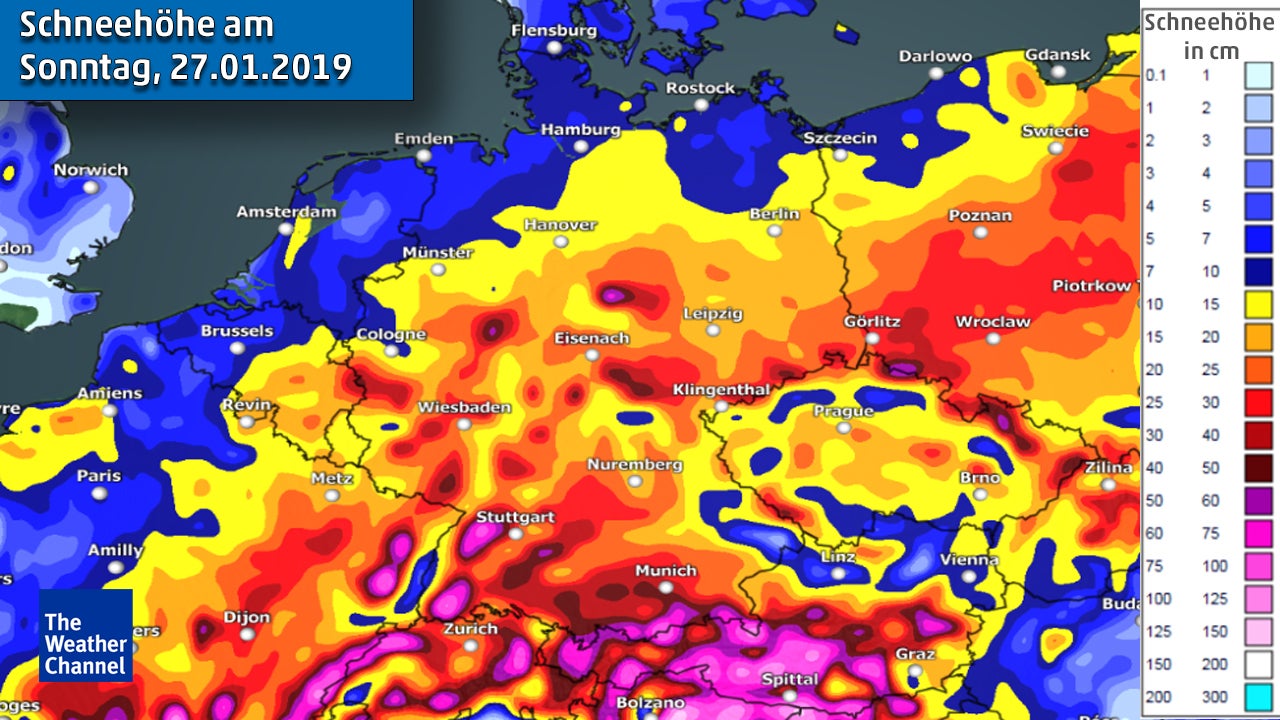In der kommenden Woche soll es ab Dienstag, dem 22. Januar, immer wieder in Deutschland schneien. Teilweise wäre das Italientief dafür verantwortlich, dass bei uns starke Schneefälle entstehen. Auch der Lake-Effekt an der Ostsee würde Schneeschauer bringen. Dadurch würde sich eine geschlossene Schneedecke in ganz Deutschland bilden – und wenn Wettermodelle recht behalten, kommen im Laufe der Woche sogar fast überall mehr als 10 Zentimeter Schnee zusammen! Selbst im Flachland sind Schneehöhen von über 20 Zentimeter möglich. Allerdings sind Niederschlagsprognosen so weit im Voraus sehr unsicher und daher könnte es auch noch anders kommen.