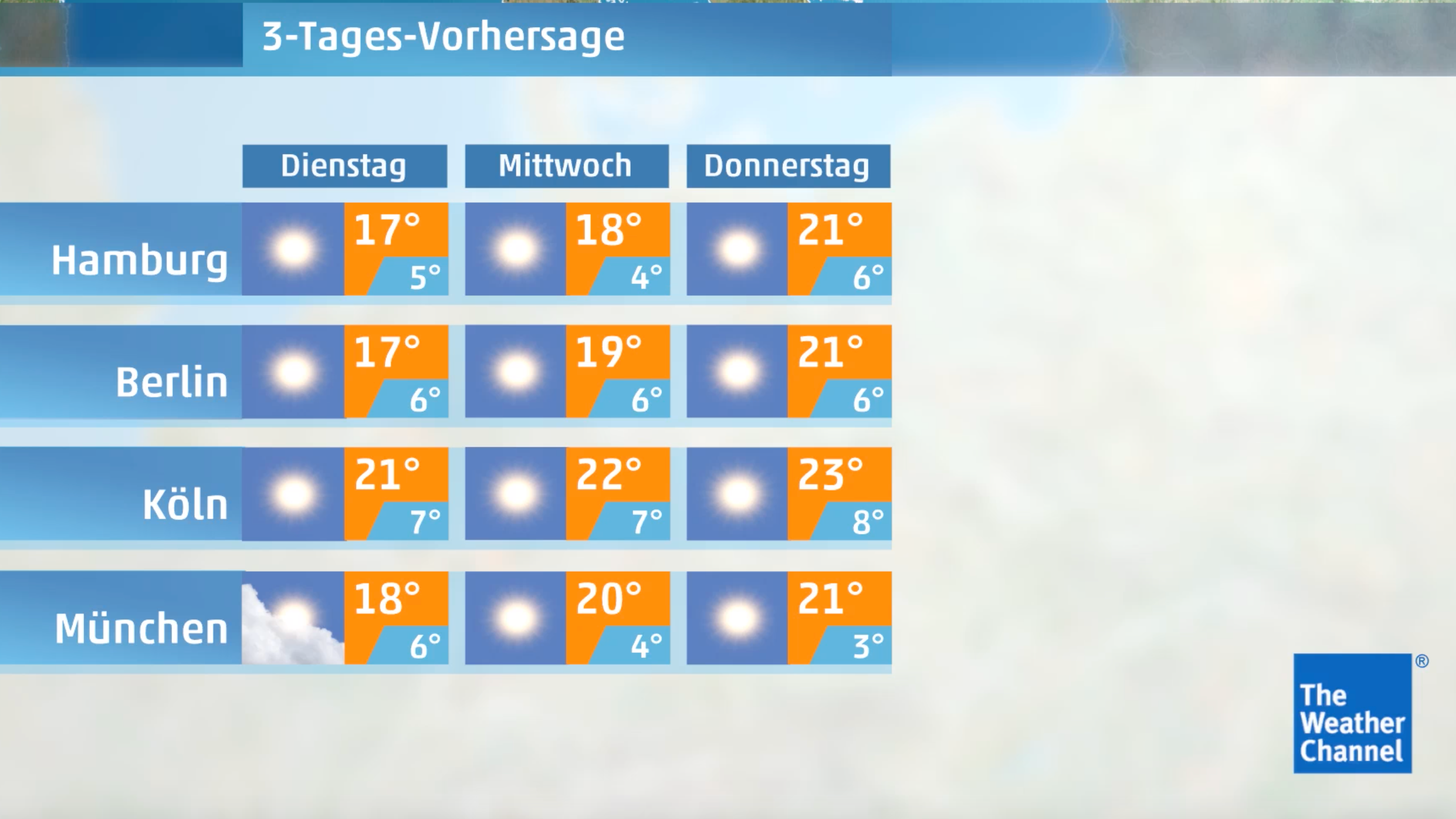 Bleiben Sie mit der kostenlosen App von The Weather Channel immer auf dem neuesten Stand! Hier herunterladen!
