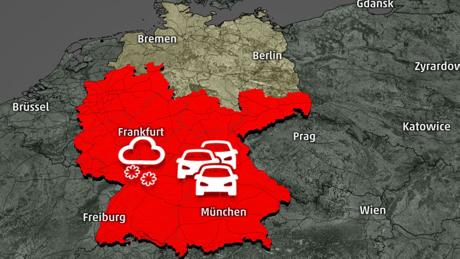 Wenn man sich den Schneefall so anschaut, dann wird schnell klar, dass es überall glatt werden kann - außer in Norddeutschland. Meist schmilzt der Schnee schnell weg. Nur in höheren Lagen und an den Alpen bleibt er liegen. Trotzdem sollte man vorsichtig sein, denn es schneit weiter. Schneeschauer sind außerdem sehr tückisch, weil die Sicht schlagartig auf null zurückgeht. Das haben Schneeschauer und Sandstürme tatsächlich gemeinsam.