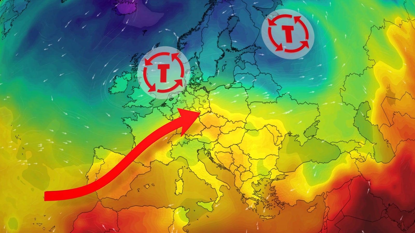 Zu Beginn der nächsten Woche kommt allerdings erstmal noch ein Schwall Kaltluft nach Deutschland. Doch im Gegensatz zu den letzten Wochen baut sich ein neues Tief über Westeuropa auf und nicht erneut ein Hochdruckgebiet wie bisher. Das bedeutet, dass warme bis heiße Luft nach Deutschland gepumpt wird. Mit anderen Worten: Es wird heiß!