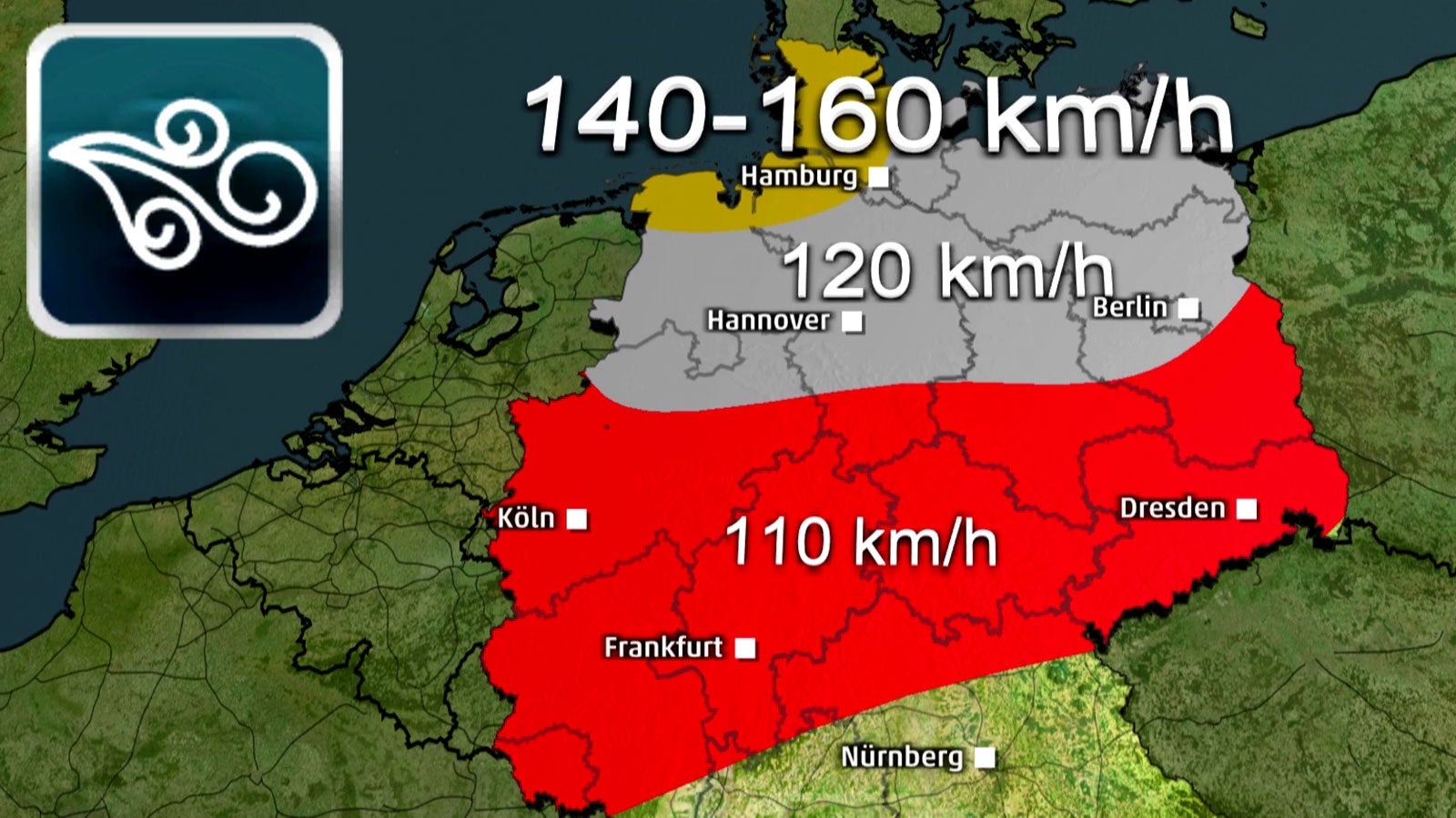 Schwerpunkt der neuen Sturm- beziehungsweise sogar Orkanlage sei vom Freitagnachmittag bis Samstagfrüh die Nordhälfte Deutschlands, sagen die Meteorologen des Deutschen Wetterdienstes (DWD) voraus. Betroffen seien Teile der Länder Schleswig-Holstein, Hamburg, Mecklenburg-Vorpommern, Bremen, Niedersachsen, Sachsen-Anhalt, Brandenburg, Berlin, Nordrhein-Westfalen, Hessen, Thüringen und Sachsen, hieß es am Donnerstagabend.
