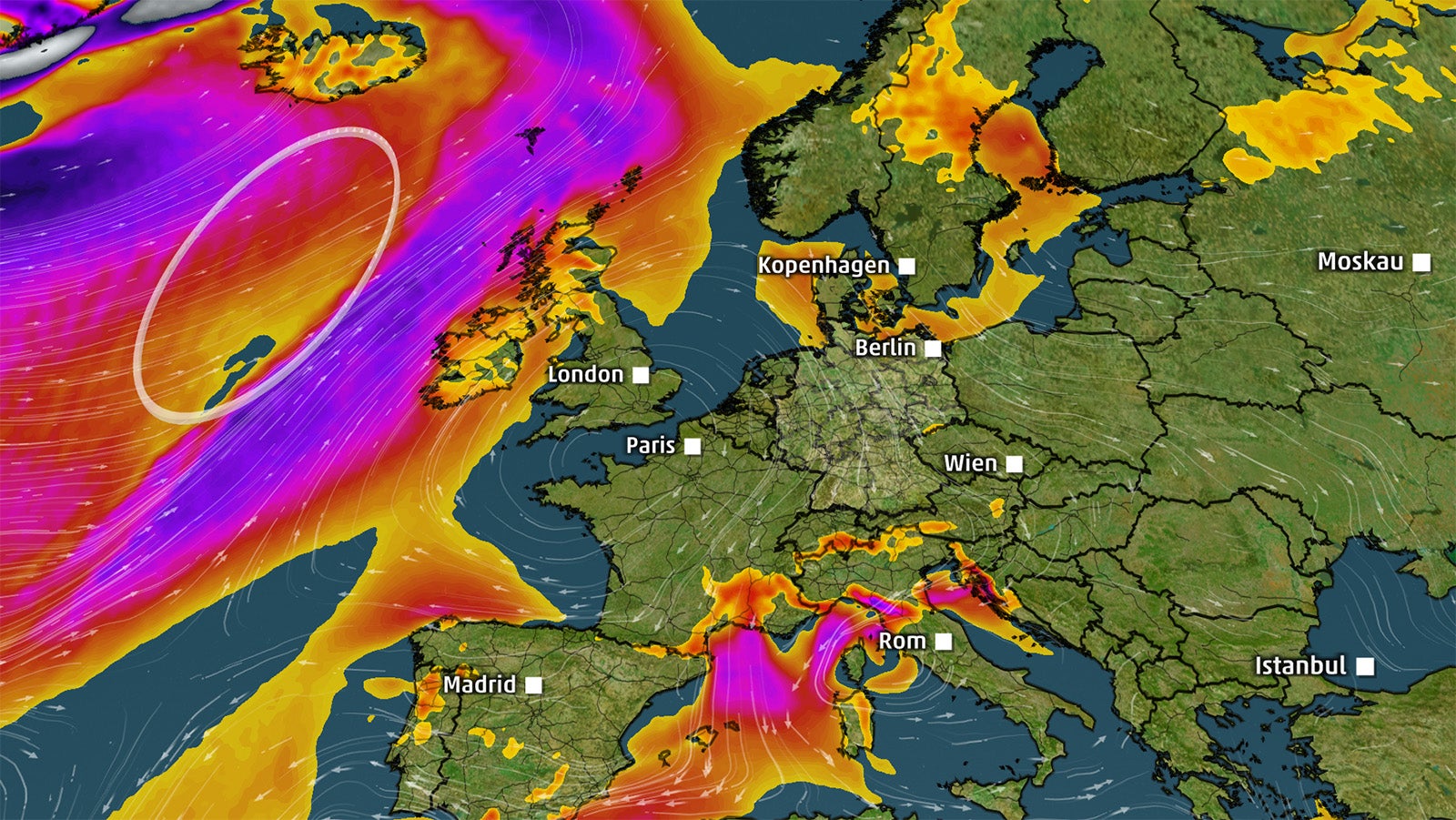 Die Orkane über dem Nordatlantik branden an den Küsten von Irland, Island und dem Vereinigten Königreich an. Damit bleiben besonders die Britischen Inseln der Schutzschild für Deutschland. Am Dienstag, Donnerstag, Samstag und Sonntag herrscht Orkan-Alarm im Nordwesten Europas. Das Vereinigte Königreich und Irland bekommen derzeit kaum eine Verschnaufpause von heftigen Stürmen.