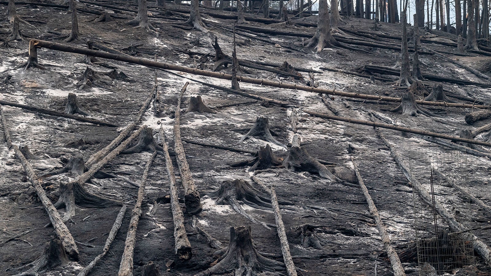 Bäume sind nach einem Waldbrand in einem Gebiet des tschechischen Nationalparks Böhmische Schweiz nahe der Grenze zu Sachsen zu verbrannt.