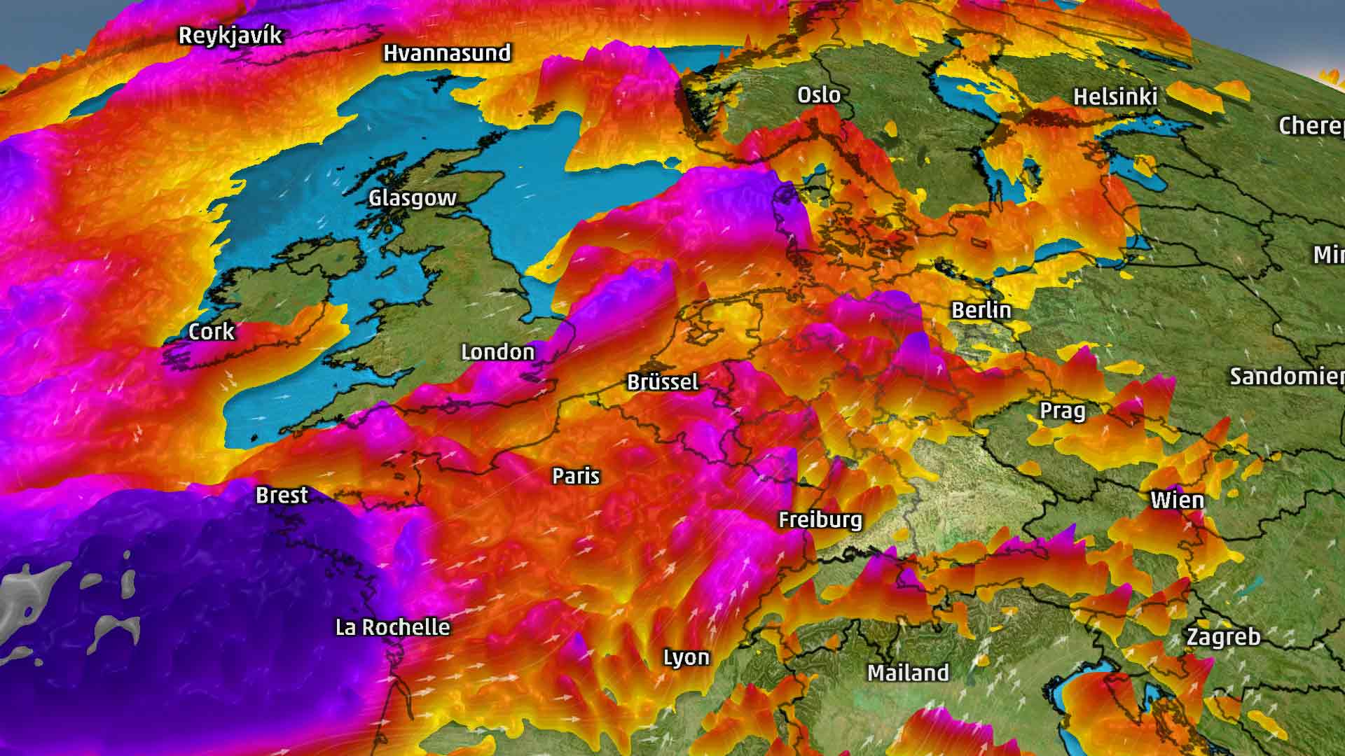 An der Nordsee seien insbesondere Ostfriesland und Helgoland betroffen. An der Ostsee soll es mehrheitlich bei Starkwind bleiben, aber von Flensburg bis Fehmarn und auf Rügen sei mit stärkeren Windböen zu rechnen. Begleitet wird der Starkwind von dichter Bewölkung und Regenschauern bei Temperaturen zwischen 11 und 14 Grad. Am Wochenende erreicht dann bereits der nächste Sturm Europa und auch Deutschland. Orkan Fred wütet dann in weiten Teilen des Landes. Mehr dazu im Video:
