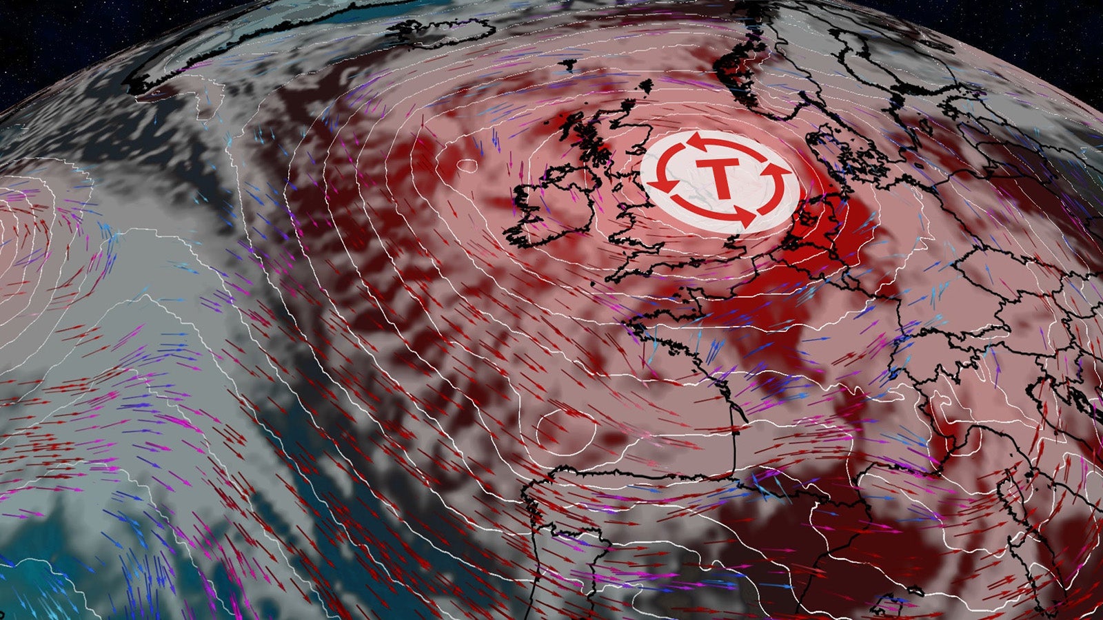 Der zweite Bomben-Zyklon am Wochenende hat es ebenfalls in sich. Nach Sturm Emir kommt es erneut zu einer Bombogenese, also einer rapiden Tiefdruckentwicklung. Der Kerndruck des Sturms fällt dabei um mindestens 24 Hektopascal in 24 Stunden. So entsteht dann der Bomben-Zyklon.