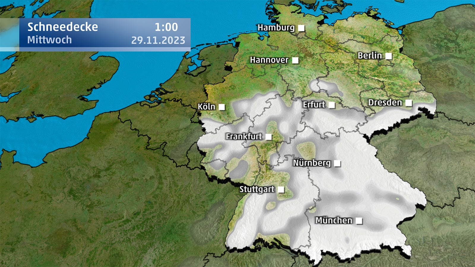 Das kennt man dort allerdings schon, Schnee ist in diesen Regionen immer ungewöhnlich, besonders so früh im Winter. Überraschenderweise erwartet uns auch im Alpenvorland Regen- oder Tauwetter, denn hier setzt sich zeitweise mildere Luft durch.