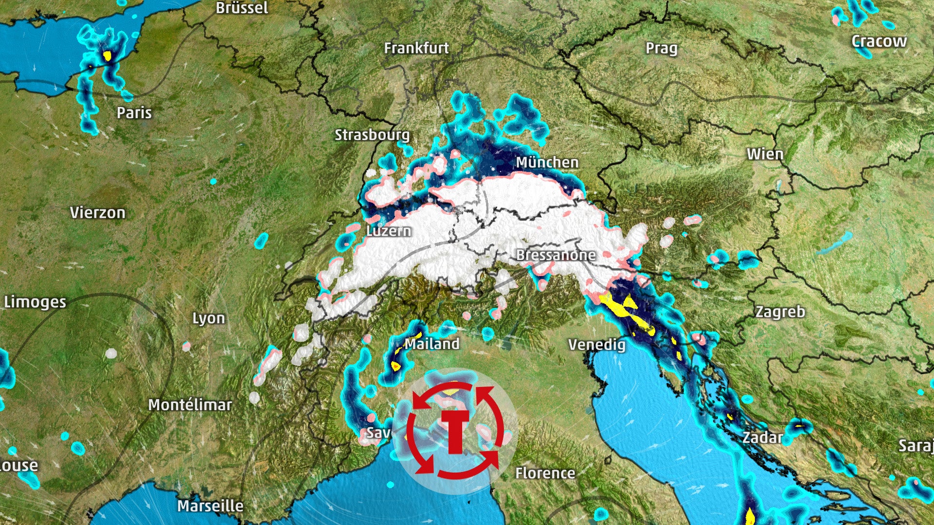 Allerdings schneit es auch sehr stark in den Alpen, und zwar von Süden. Die Straßen nach Italien drohen also einzuschneien, wie vor kurzem erst, als der Brenner stundenlang gesperrt war.