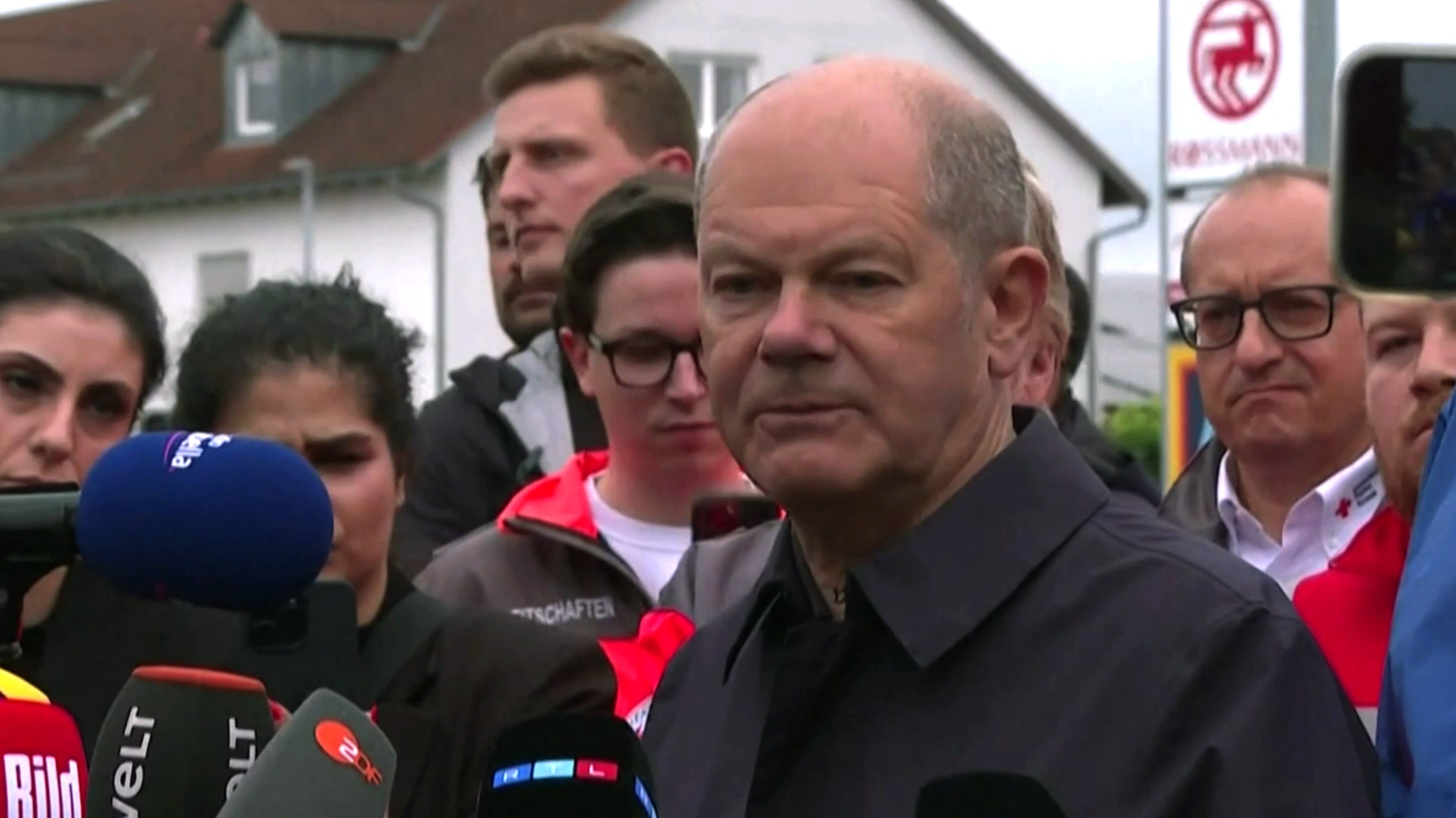 I​m Video: Bundeskanzler Scholz besucht Hochwassergebiet