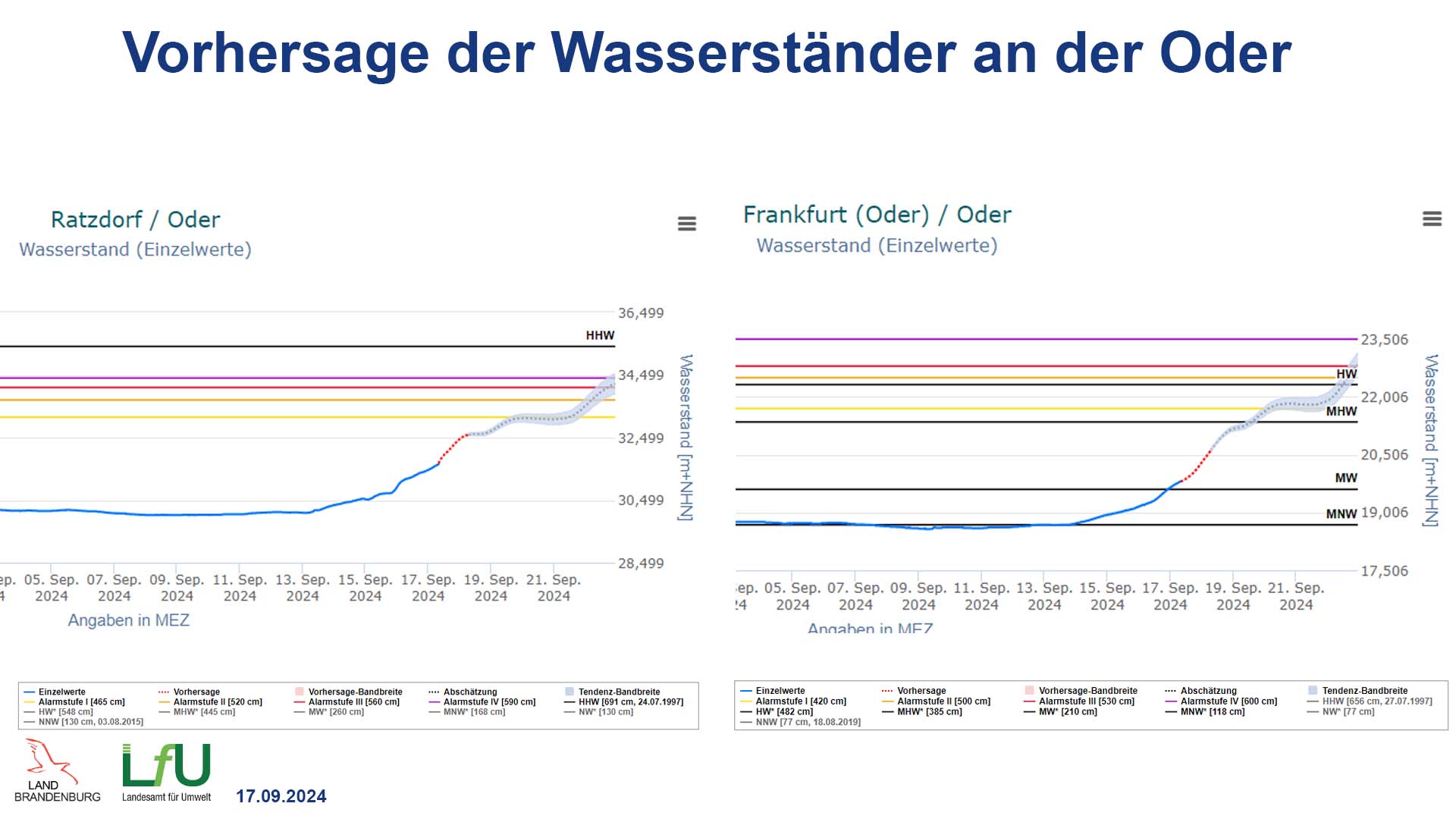 An der Oder in Deutschland wird es am Wochenende nochmal gefährlich, wenn die Hochwasserwelle bei uns ankommt. Alarmstufe 3 ist schon sicher und Alarmstufe 4 sehr wahrscheinlich.