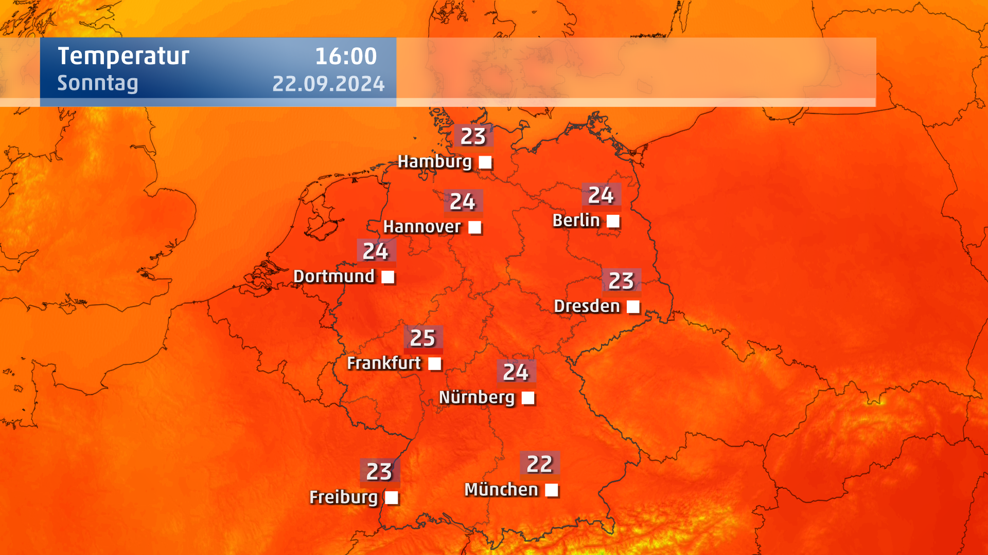 Am Samstag bleibt in den Regionen des Alpenvorlands und entlang der Donau zunächst dichter Nebel oder Hochnebel bestehen. In den übrigen Gebieten löst sich der Nebel jedoch schnell auf und der Tag verläuft sonnig und trocken. Vielerorts werden bis zu 12 Stunden Sonnenschein erreicht. Die Luft kann sich am Samstag im Tagesverlauf auf zum Teil sommerliche Werte von milden 20 Grad bis warmen 26 Grad erwärmen.