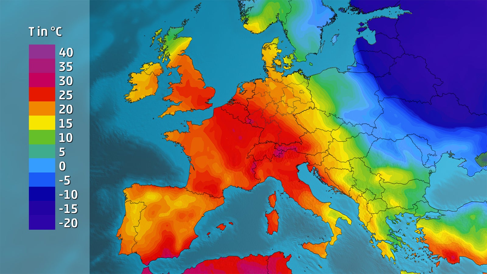 Der Grund hierfür liegt in einem weiterhin stabil ausgebildeten Hochdruckgebiet über Europa. Tiefdruckgebiete werden nördlich an uns vorbeigeleitet und wirken sich nicht auf das Wetter aus.