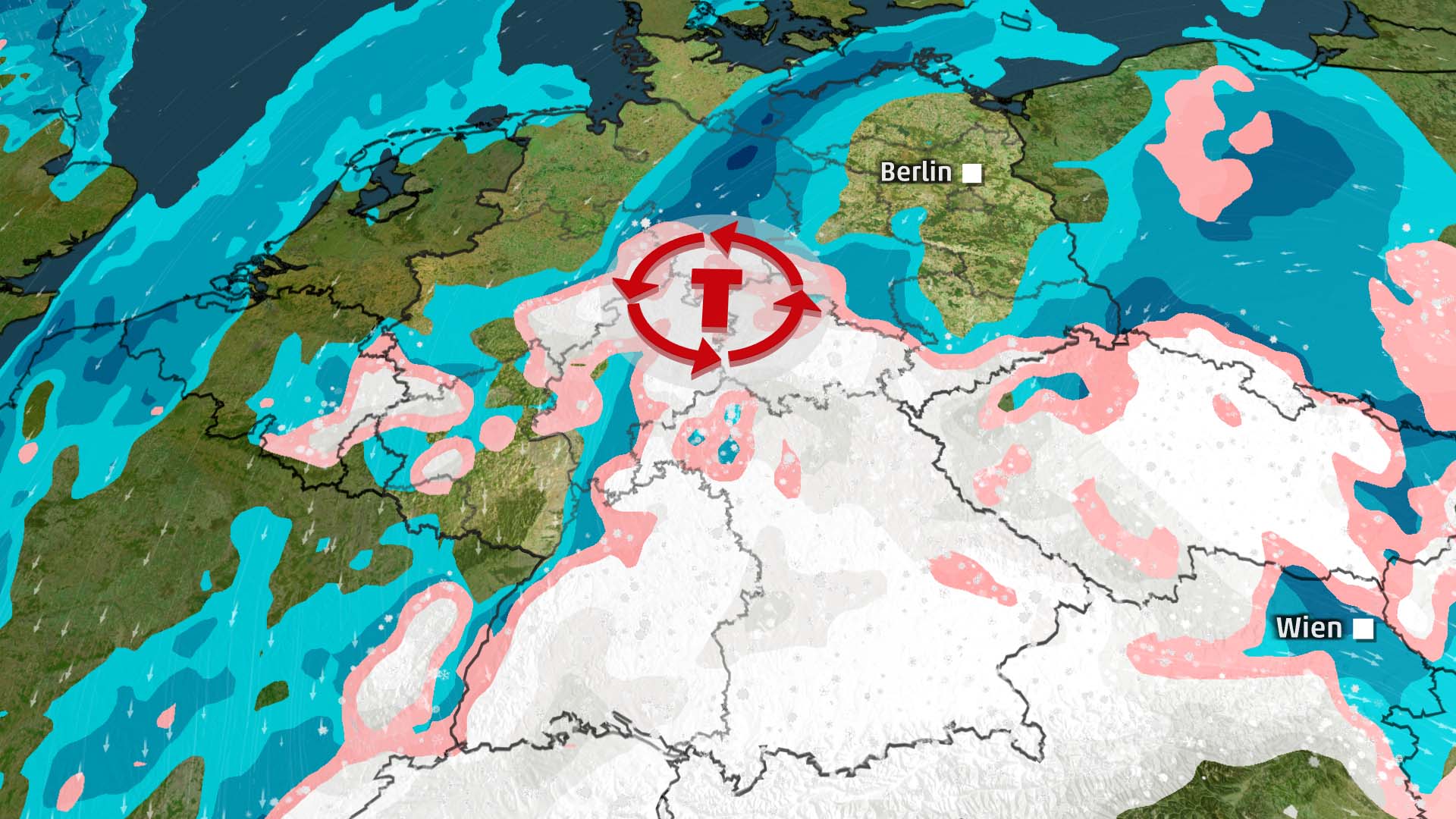 Der Weg ist dann frei für Tiefdruckgebiete vom Atlantik und damit auch für Regen und Schnee.