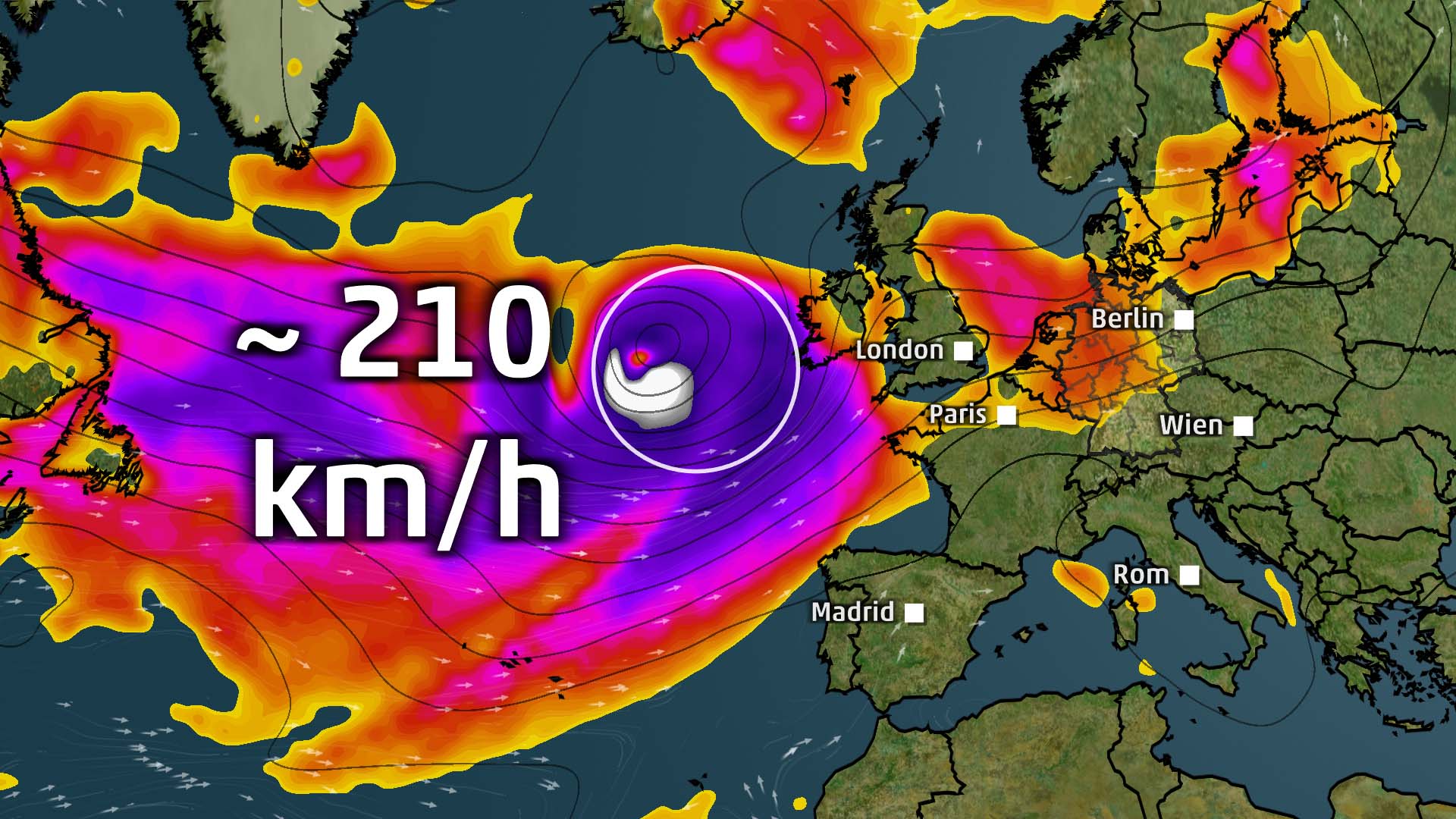 Es wird ein sehr starker Orkan werden. Die Mittelwinde können zwischen 120 und 160 km/h erreichen. Die Windböen sogar zwischen 160 und 210 km/h. Das ist für Europa schon sehr extrem.