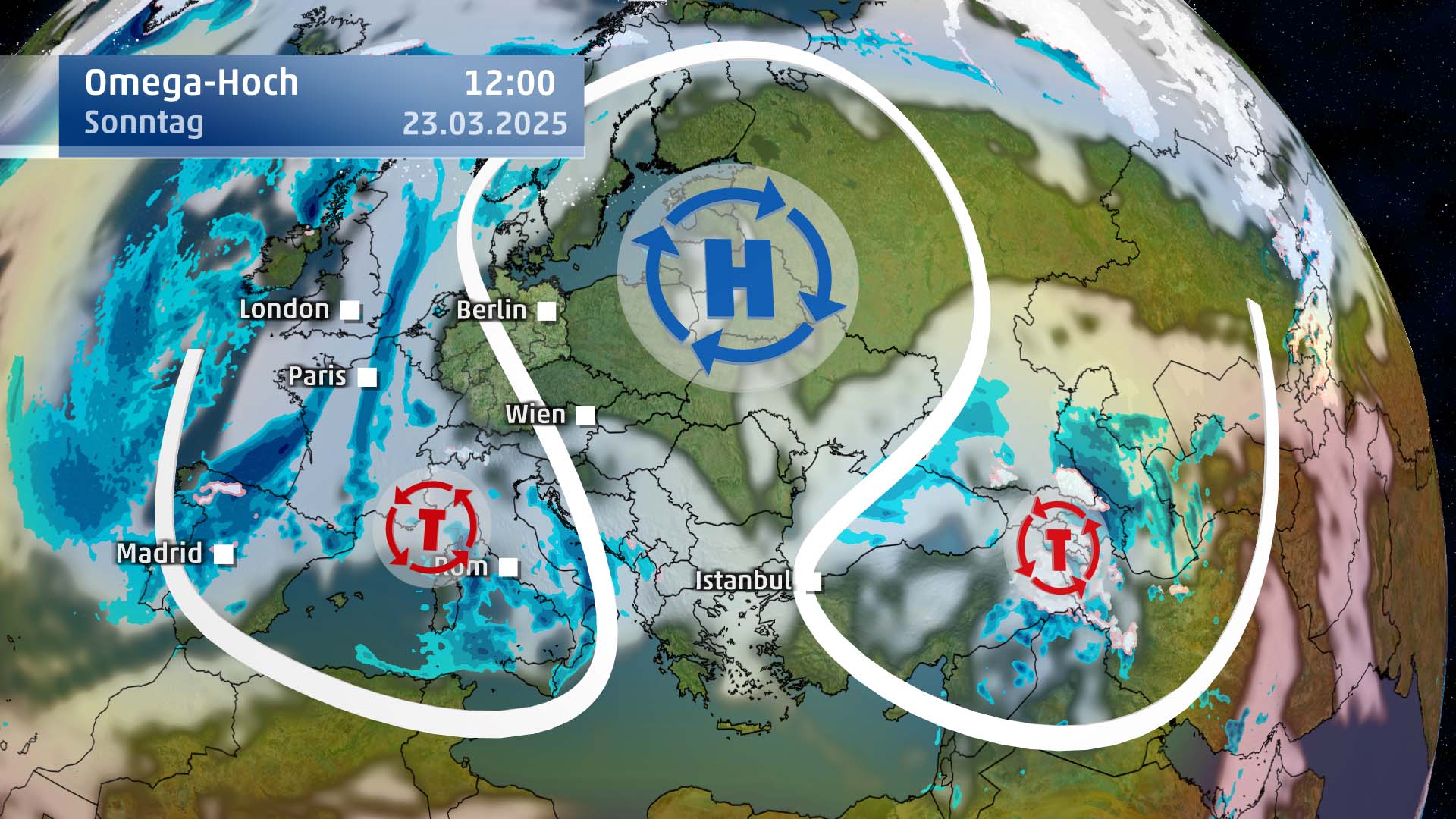 Die Omega-Lage nächste Woche bringt uns den Frühling aber auch Unwetter nach Südeuropa.