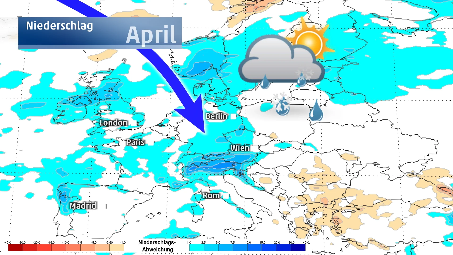 Im April sieht es schon ganz anders aus als noch im März: Es kommt wieder häufiger Luft aus Norden zu uns und der Hochdruck verlagert sich in Richtung der Britischen Inseln. Und dann kommt die Kaltluft-Autobahn über der Nordsee noch ins Spiel. Mäßig kalte Luft kann im April wieder öfter bis nach Deutschland vordringen. In der Folge wird es nicht ganz so warm und vor allem auch ziemlich nass.