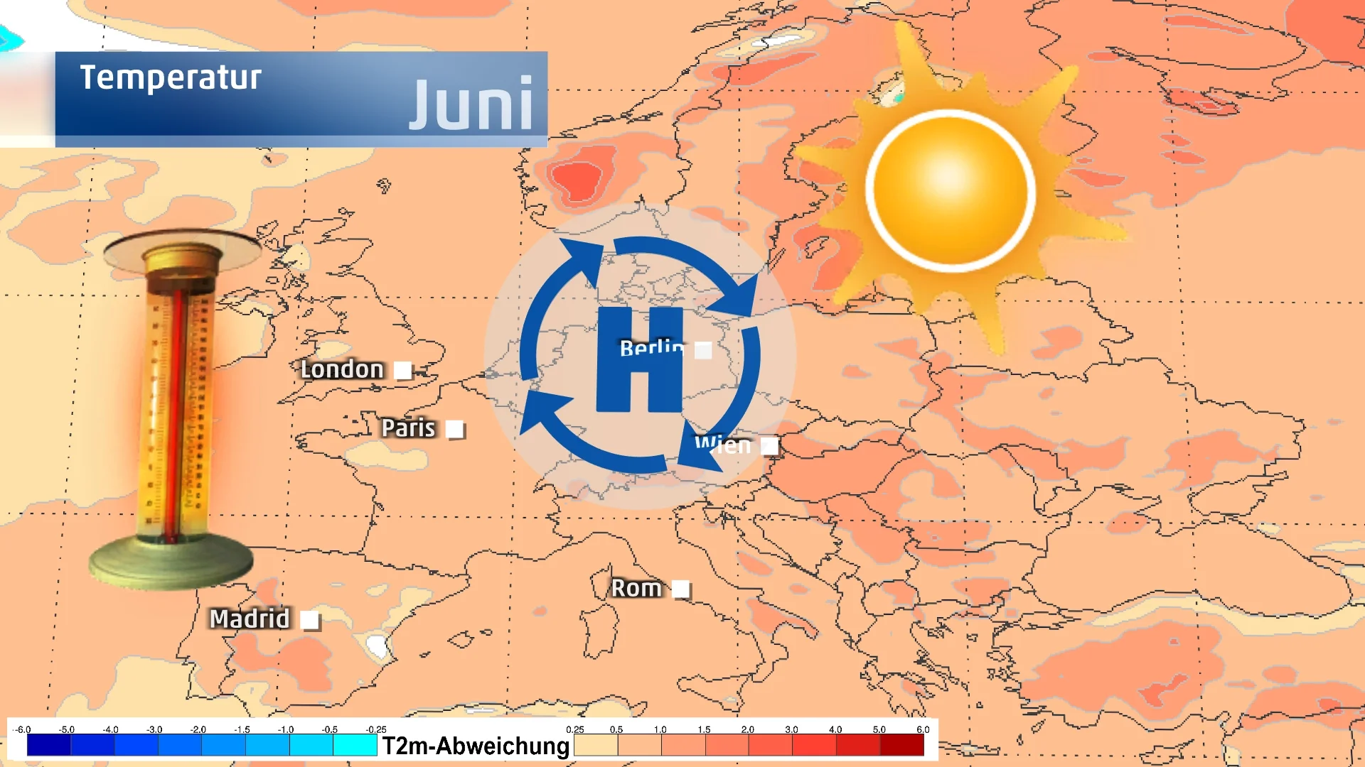 Im Juni, der kalendarisch noch überwiegend zum Frühling gehört, prägt sich das Sommermuster bereits immer stärker aus. Anfang Juni wird es voraussichtlich noch wie im Mai weitergehen, aber dann setzt sich verstärkt Hochdruck über Deutschland durch.