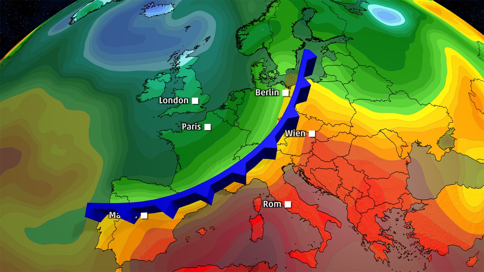 Eine hohe Gewitterenergie, hohe Temperaturen, sehr viel Wasser in der Luft und dazu noch Scherwinde – das könnte am Samstag zu Unwettern führen. Zwischen Saarbrücken und Frankfurt kann es ab Samstagnachmittag zur Entwicklung von schweren Unwettern kommen, die ostwärts ziehen. Multizellen kann man als sicher annehmen, aber auch Superzellen können auftreten. Das heißt: Von 16 bis 18 Uhr herrscht zwischen Frankfurt, Nürnberg und Leipzig erhöhte Tornadogefahr. Doch auch am späten Abend können noch Gewitter von Frankreich hereinziehen.