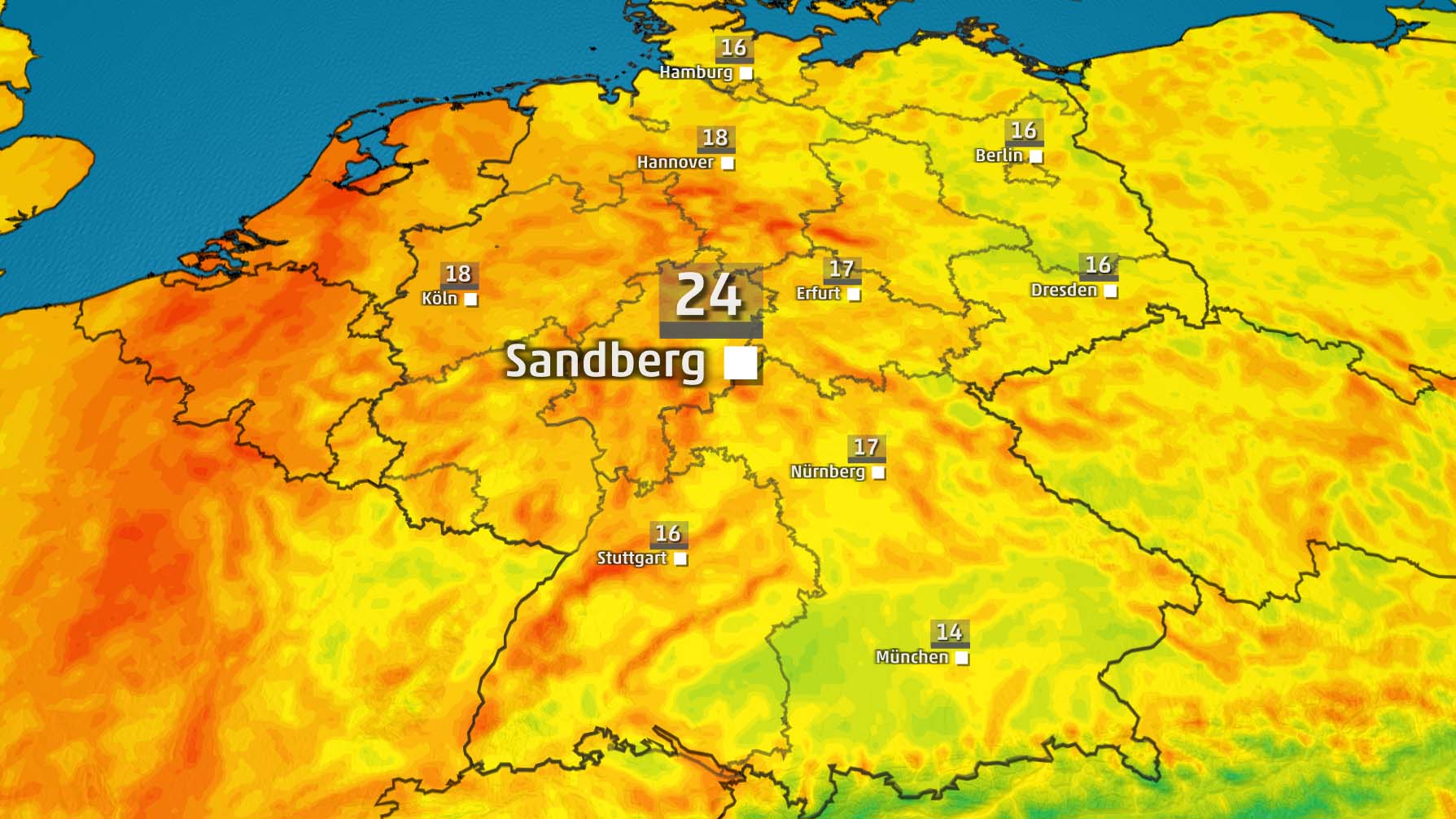 In der Gemeinde Sandberg im Norden Bayerns gab es den bisherigen Temperaturrekord für 2025 – allerdings in der Nacht.