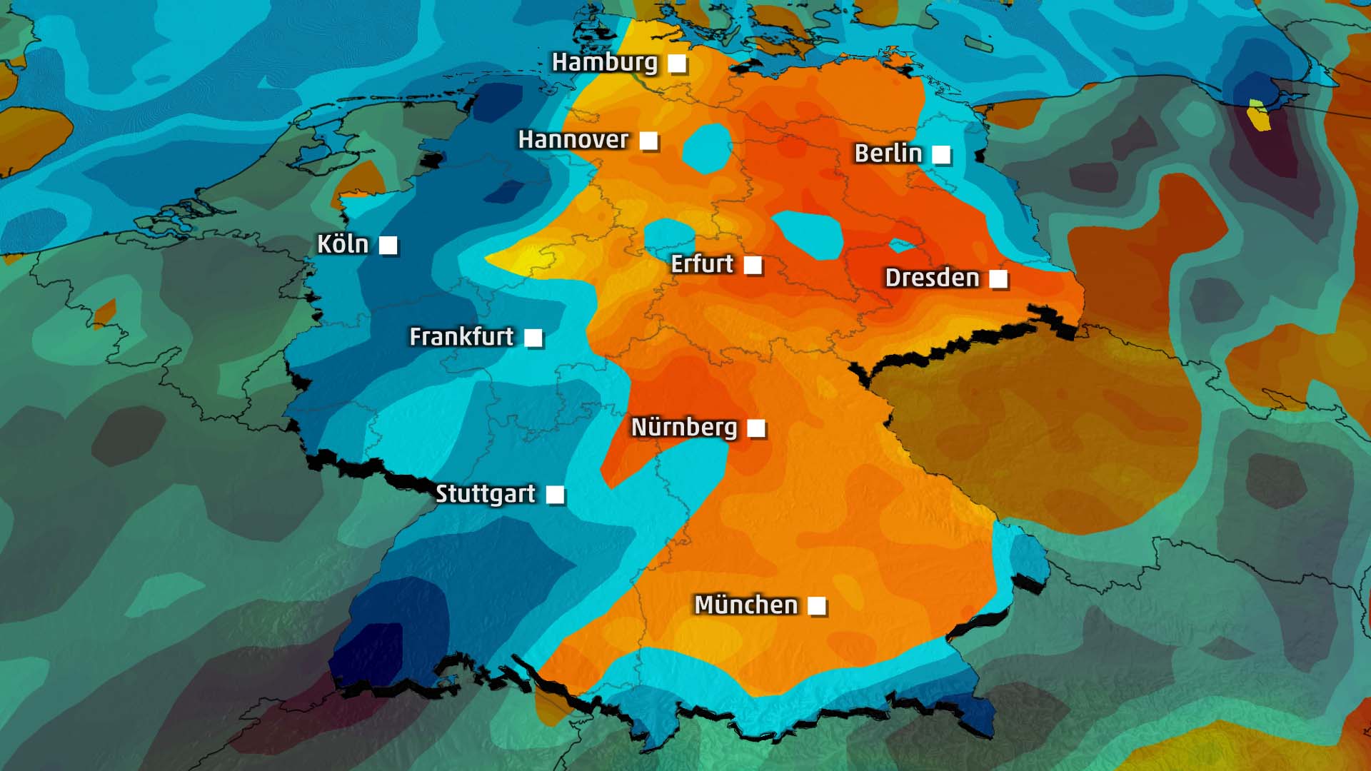 Am Sonntag kann es dann noch im Westen zu etwas Regen kommen. Und auch im Südosten sind ein paar Schauer dabei. Am trockensten bleibt es am Wochenende im Nordosten und Osten. Am Sonntag werden es maximal noch 17 bis 21 Grad in Deutschland.