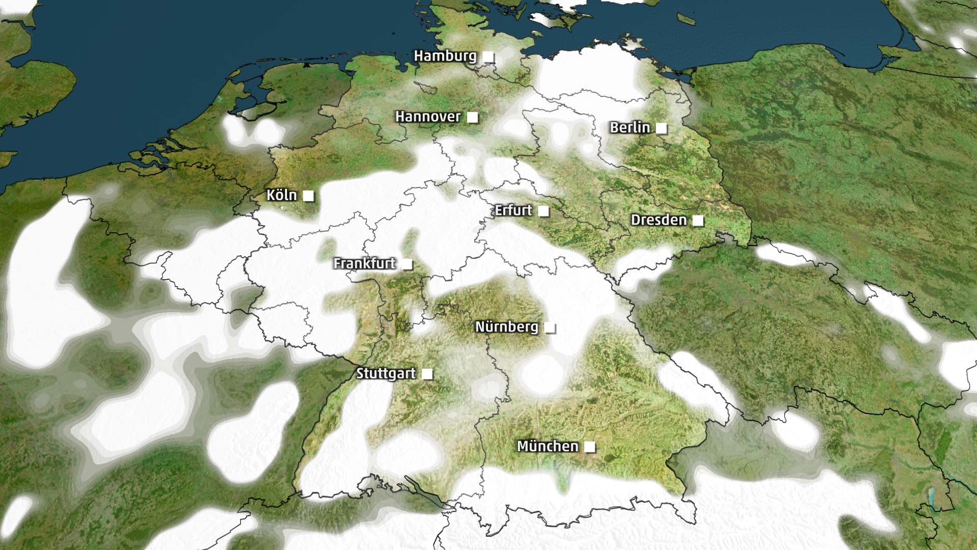 Selbst in Hamburg und Schleswig-Holstein schneit es zeitweise. Ebenso in Berlin und vielleicht sogar in Frankfurt am Main. Kurzzeitig kann es in der Nacht auf Donnerstag fast überall mal schneien, wenn das Niederschlagsband über Deutschland hinwegzieht. Der Schwerpunkt des Schneefalls ist aber von Köln bis Hamburg zu finden.