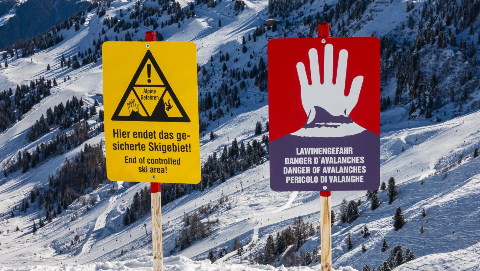 Warnschilder an einer Skipiste in Österreich: Angesichts der brisanten Lawinenlage warnen Behörden dringend, die Skipisten nicht zu verlassen.